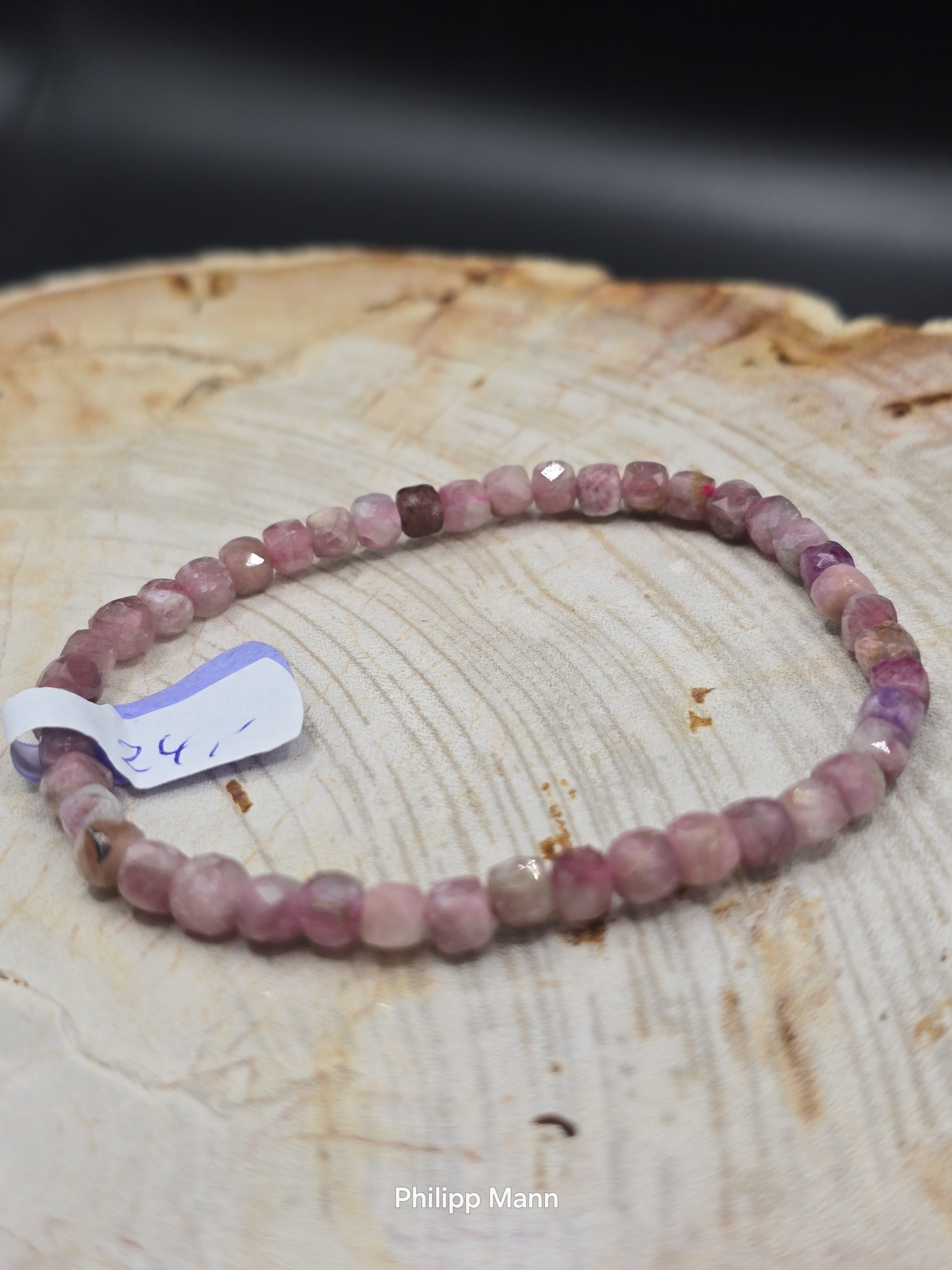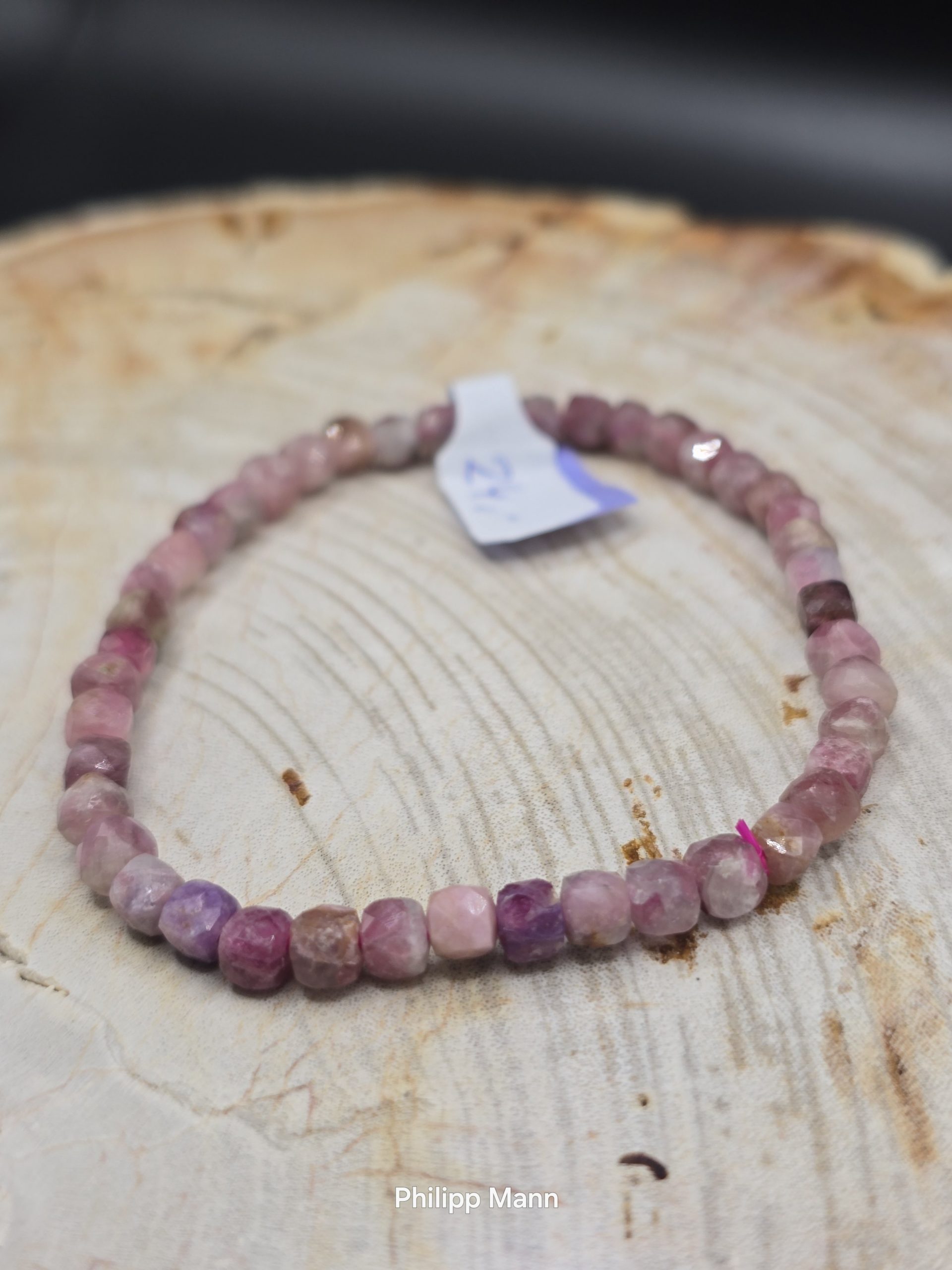 Das Armband aus faccetierten rosa Turmalin Würfeln ist mehr als nur ein Accessoire, es ist ein Ausdruck von Stil und Schönheit. Mit seinen 4 mm Würfeln und einer Länge von ca. 17 cm, bietet dieses Armband nicht nur einen visuellen Reiz, sondern auch die positiven Eigenschaften des rosa Turmalins. Perfekt für Menschen, die Eleganz und Wohlbefinden kombinieren möchten. Verleihen Sie Ihrem Look das gewisse Etwas mit diesem bezaubernden Schmuckstück.