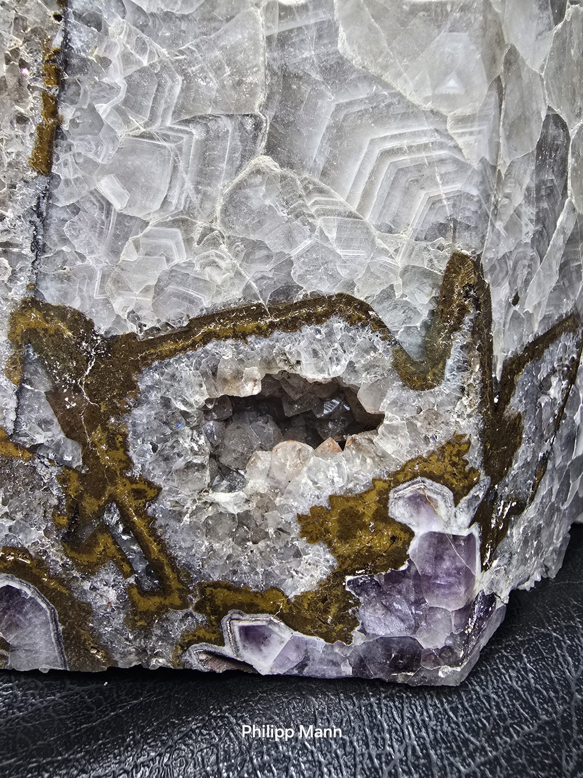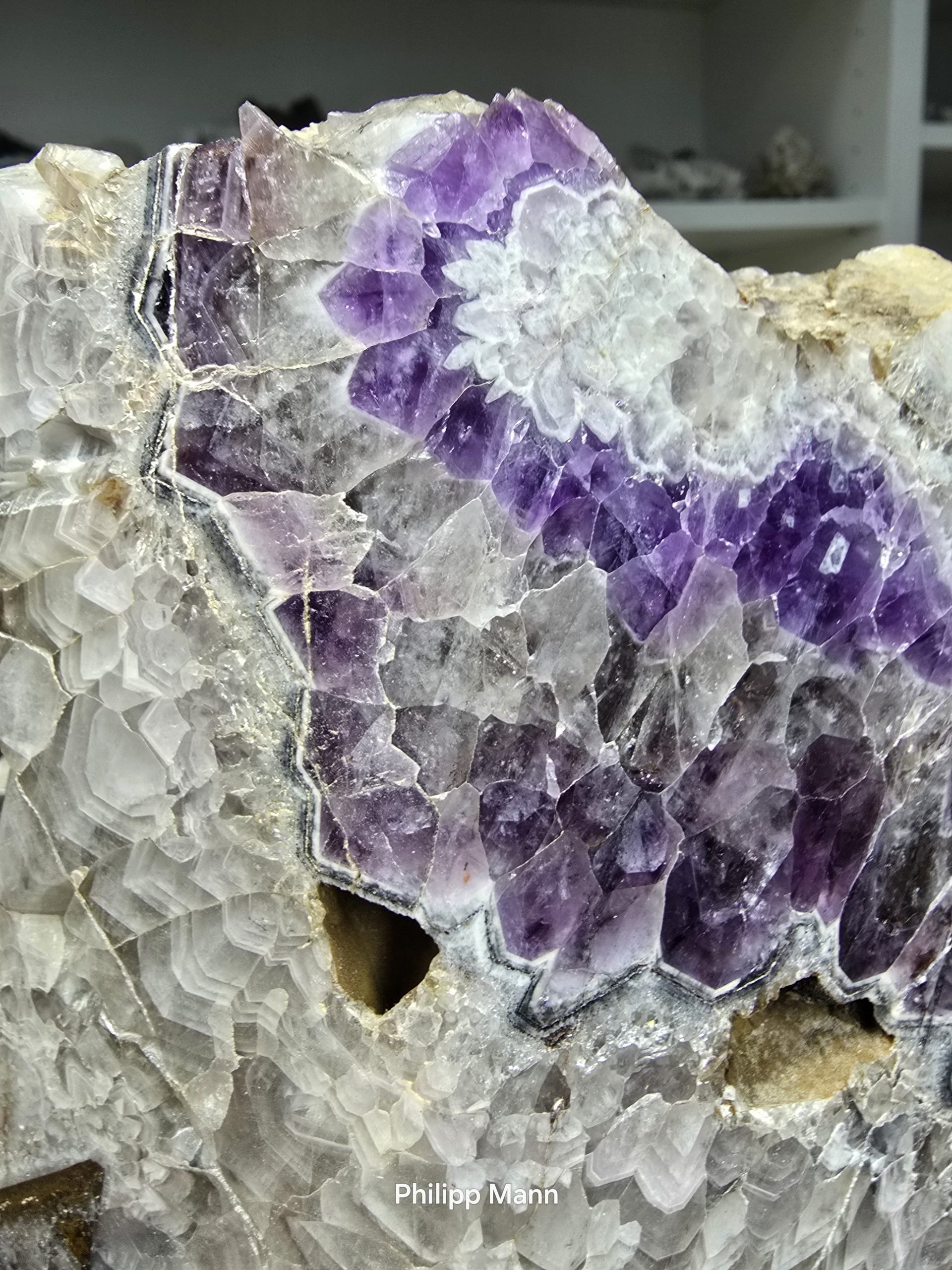 Amethyst aus Geyer Erzgebirge Anschliff und Kristalle