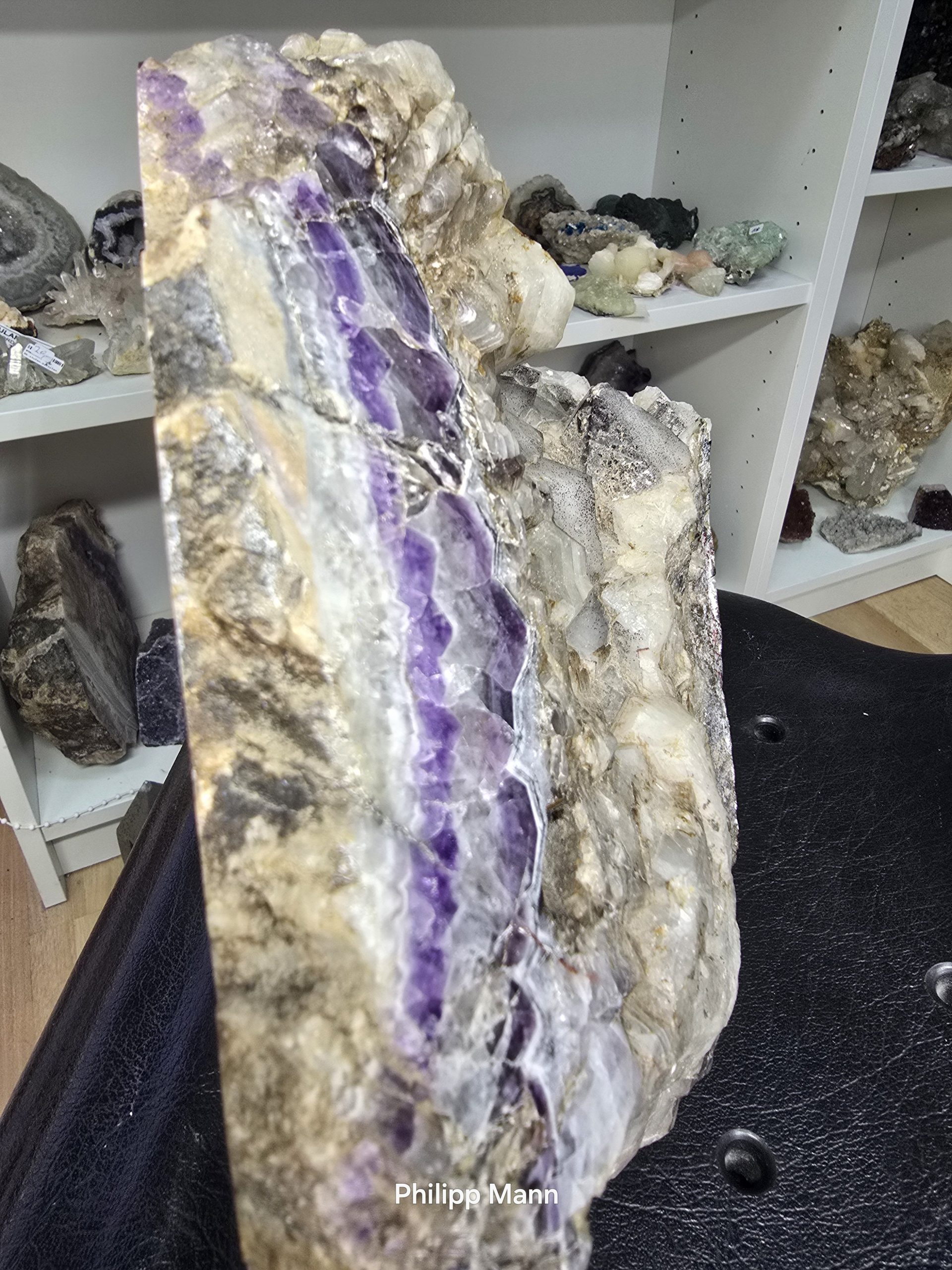 Amethyst aus Geyer Erzgebirge Anschliff und Kristalle Maße 27,5 cm x 20,5 cm x 13 cm 6924 Gramm Farbeabweichung möglich je nach Monitoreinstellung