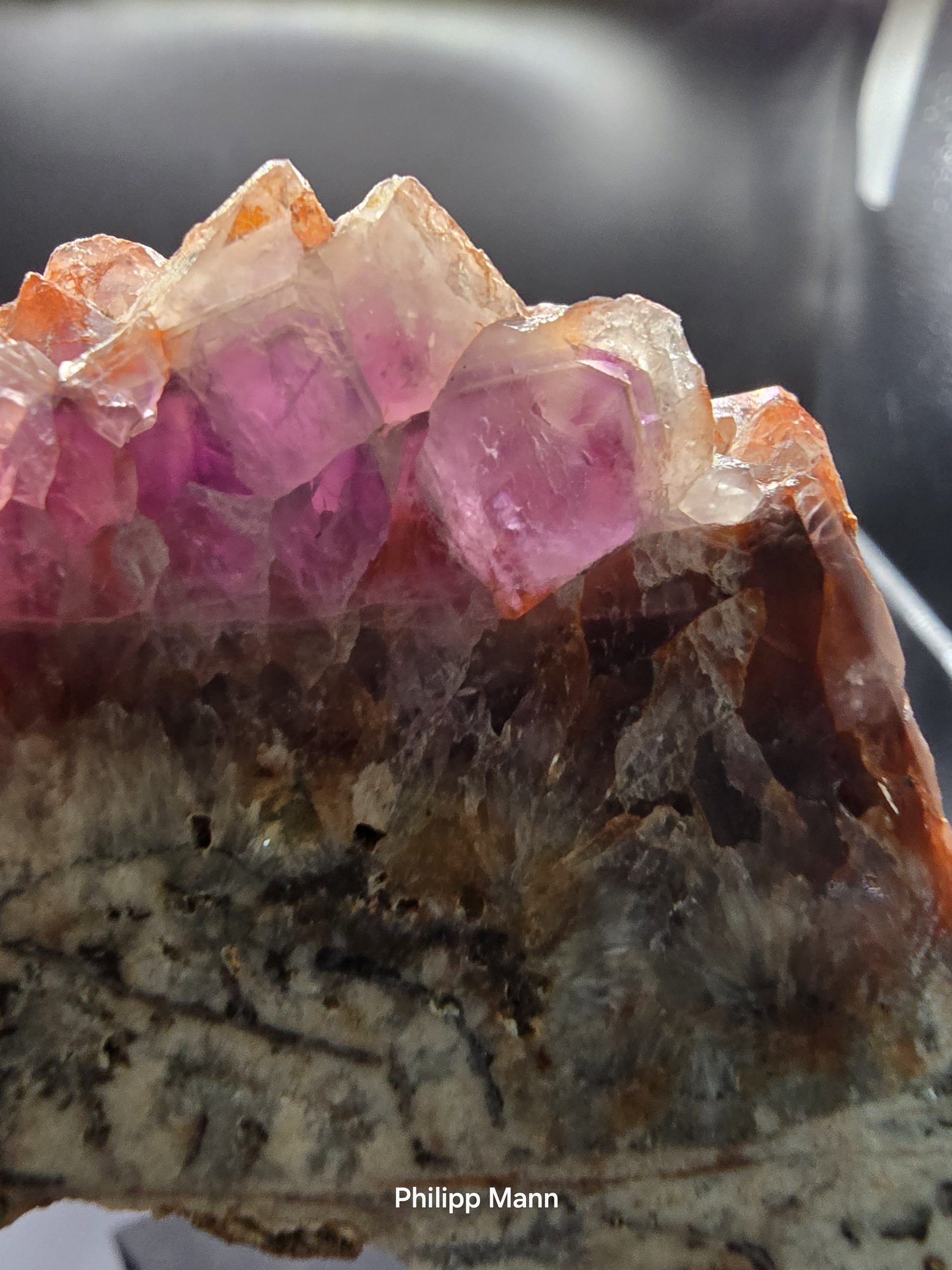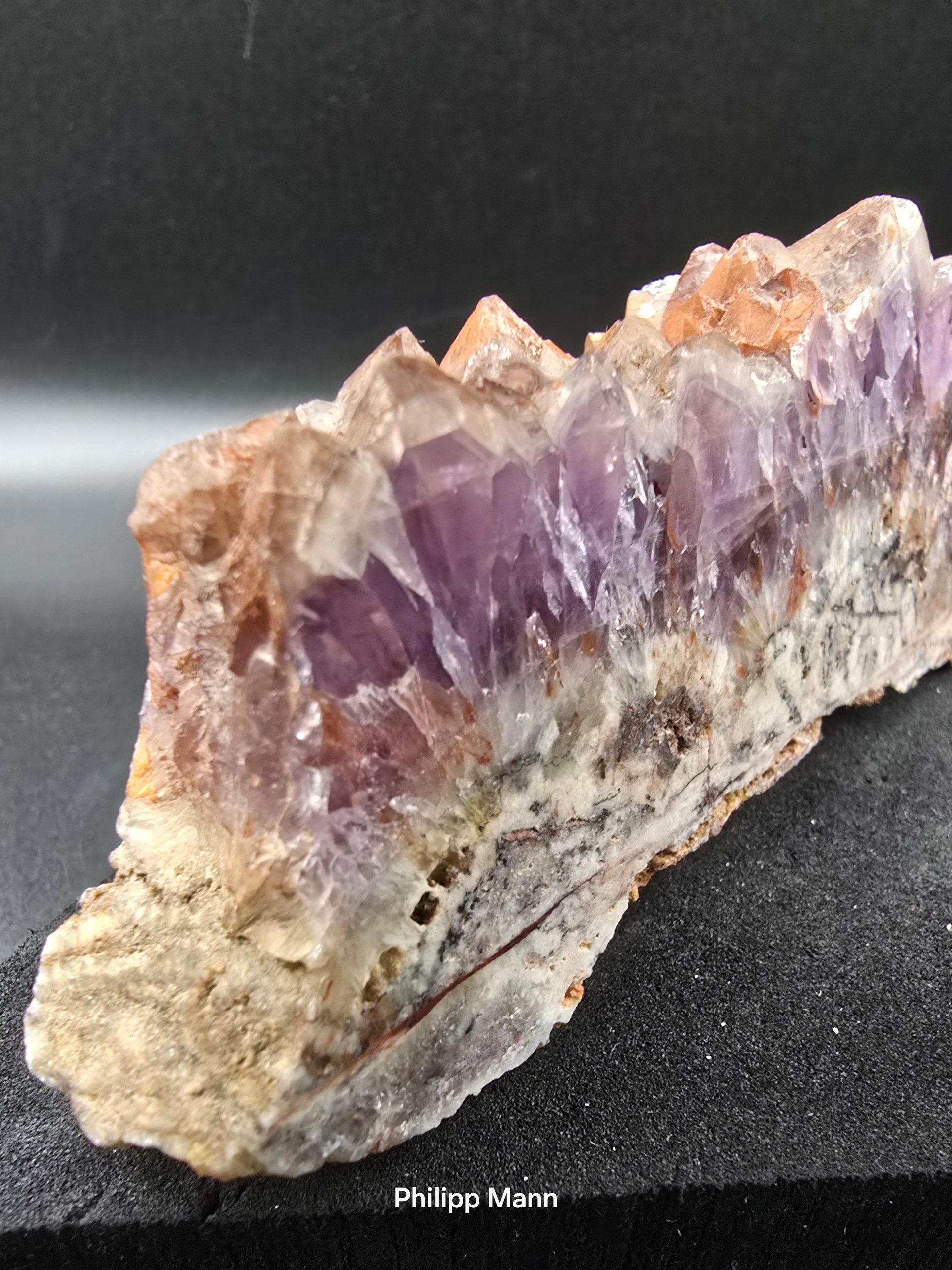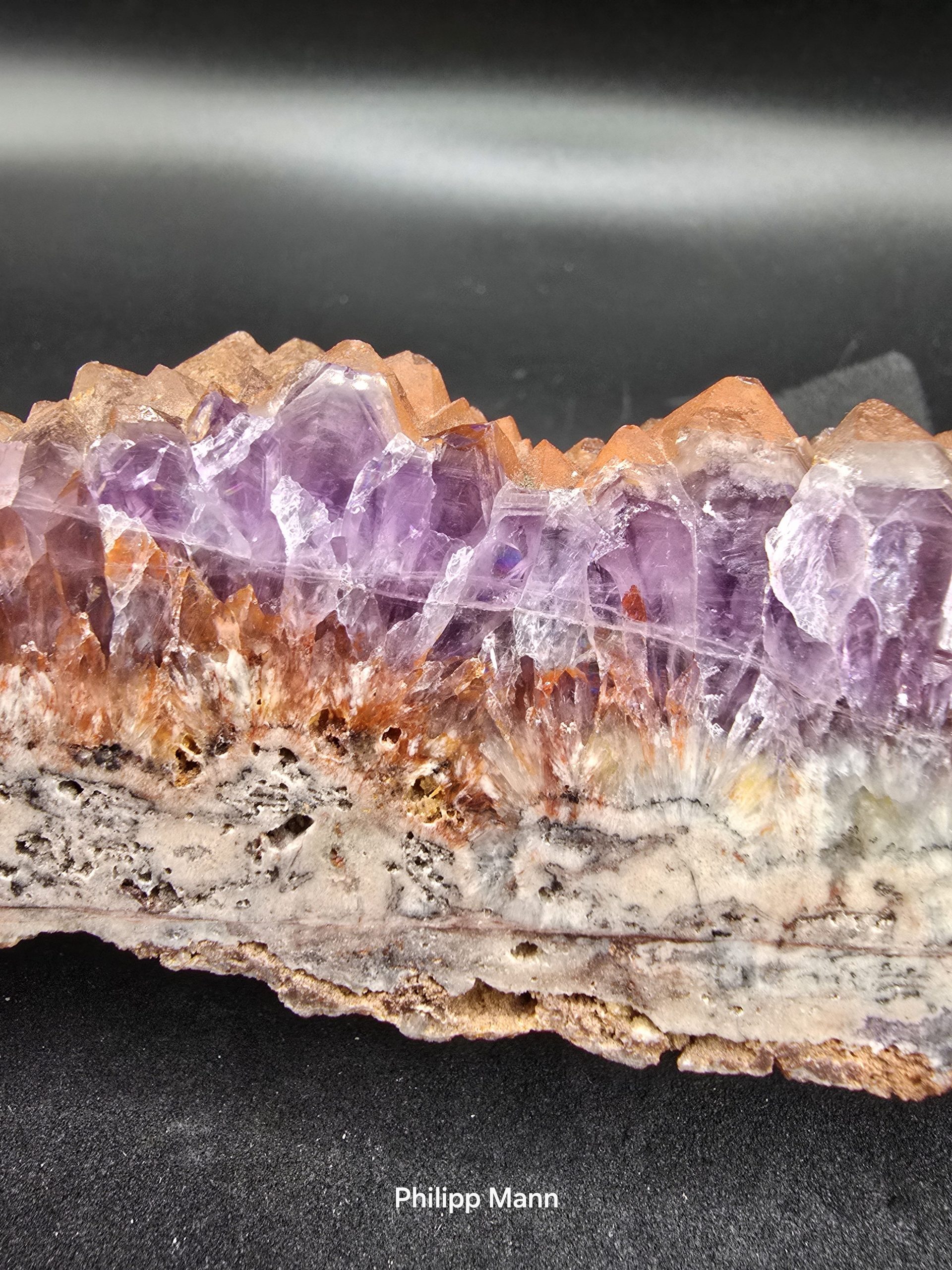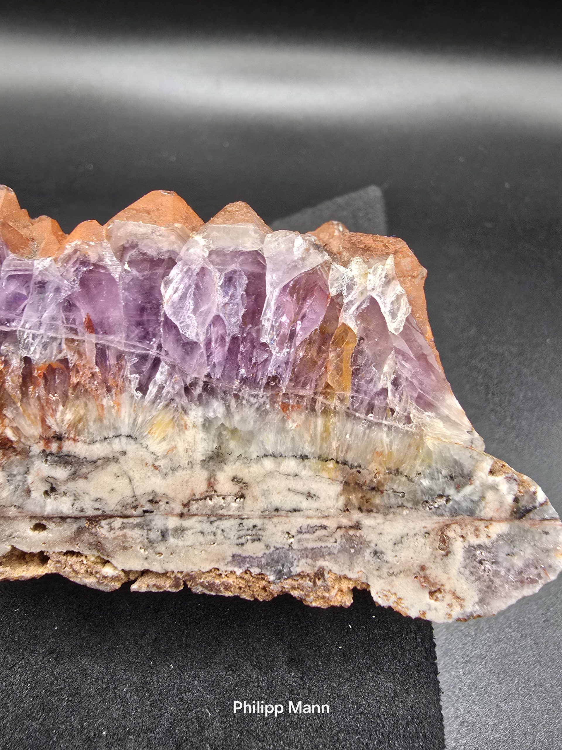 Amethyst mit Hämatit Anschliff beide Seiten aus Reitzenhain Erzgebirge