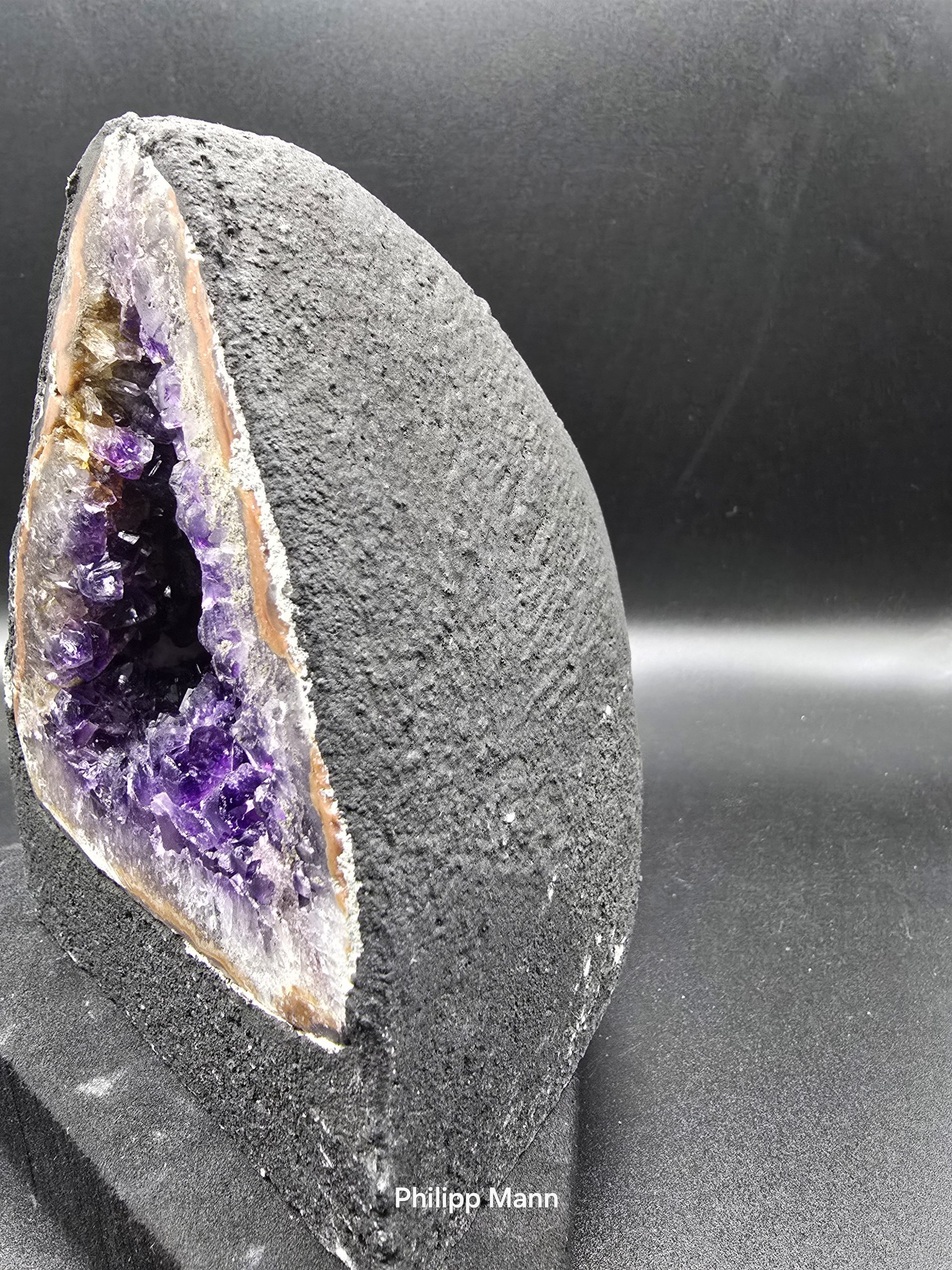 Erleben Sie die faszinierende Pracht dieser Amethystdruse aus Uruguay! Ein beeindruckendes Sammlerstück, das durch sein tiefes Lila und seine hervorragende Größe begeistert. Perfekt für jeden, der Schönheit und Ruhe in sein Zuhause bringen möchte.