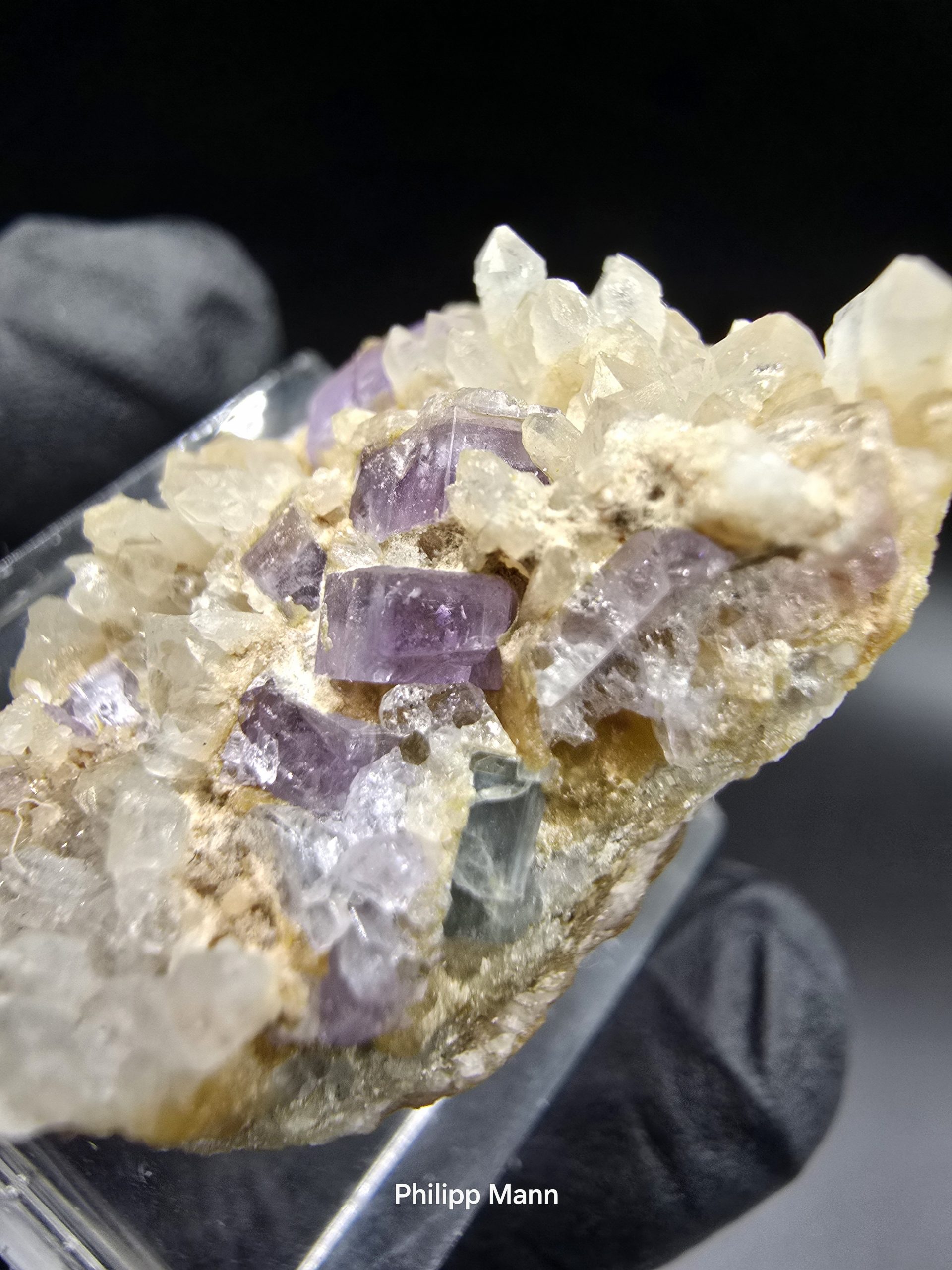 Dieses Apatit-Gebilde aus dem Erzgebirge vereint die Schönheit von rosa und blauem Apatit, kunstvoll eingebettet in Quarz. Die Maße von 3 cm x 2,5 cm x 1,8 cm und ein Gewicht von 30 Gramm machen es zu einem idealen Sammlerstück und einer dekorativen Bereicherung für jeden Raum. Die leuchtenden Farben und die kristalline Struktur ziehen alle Blicke auf sich. Farbabweichungen können je nach Monitoreinstellung vorkommen. Lassen Sie sich von dieser Mineralien-Rarität verzaubern!