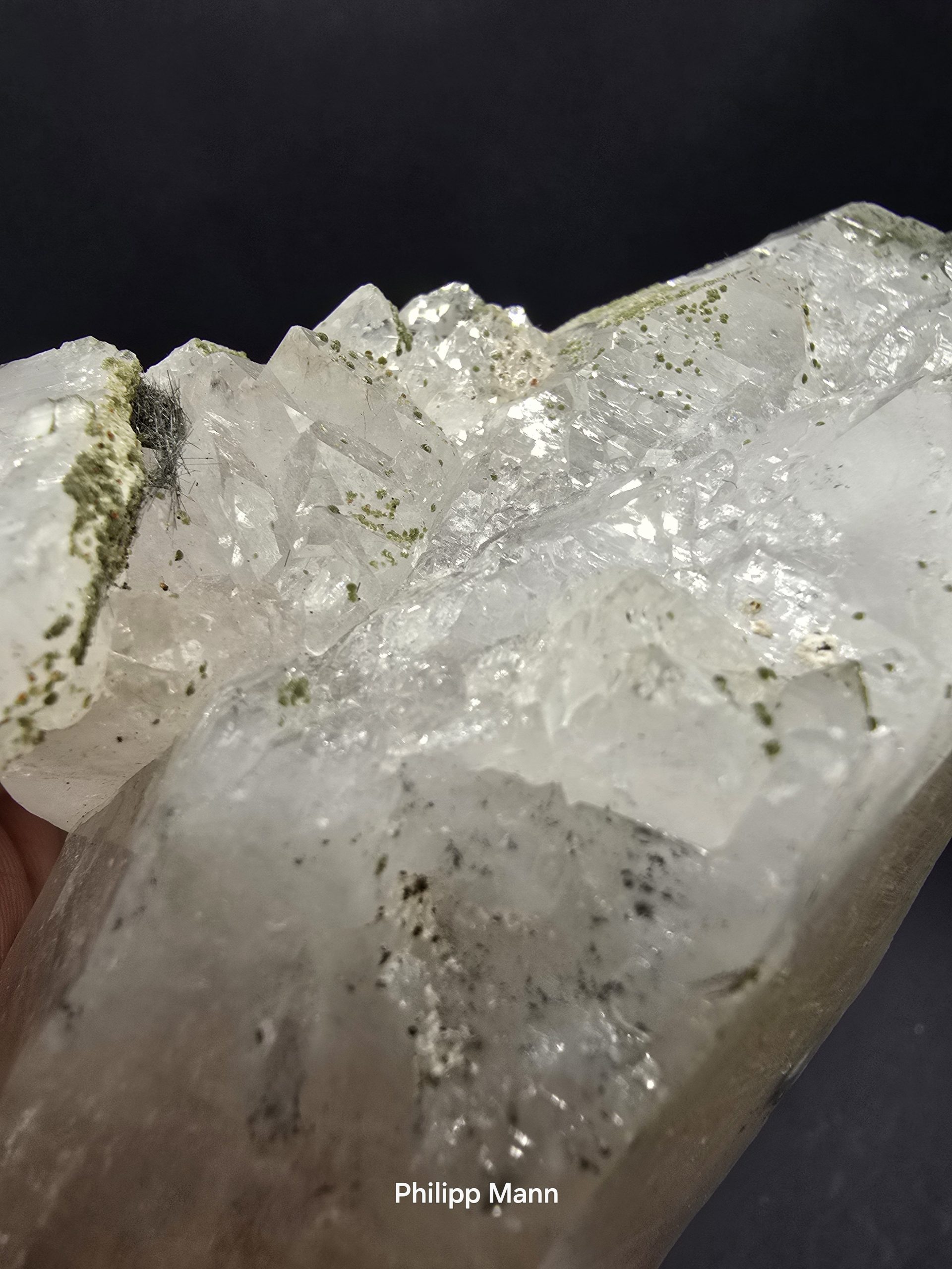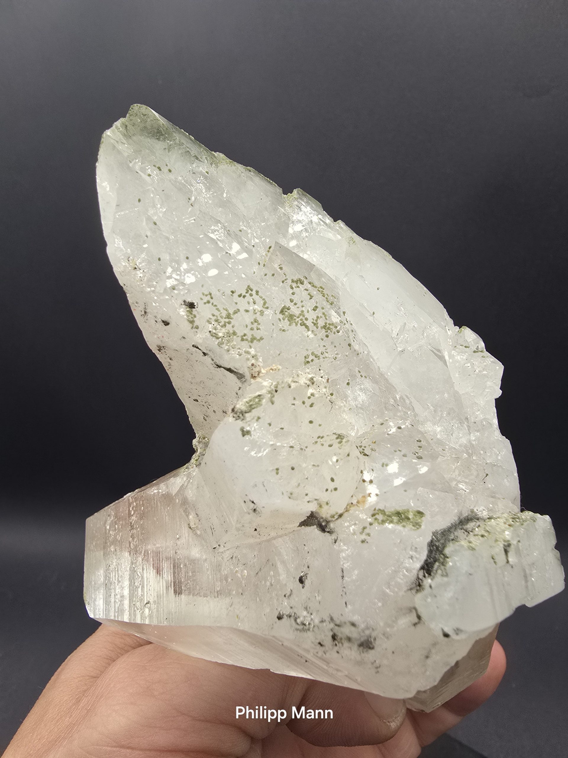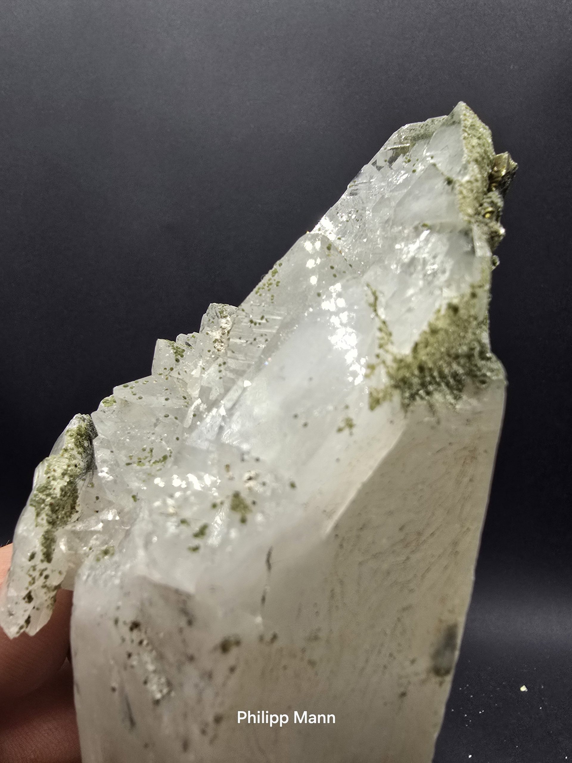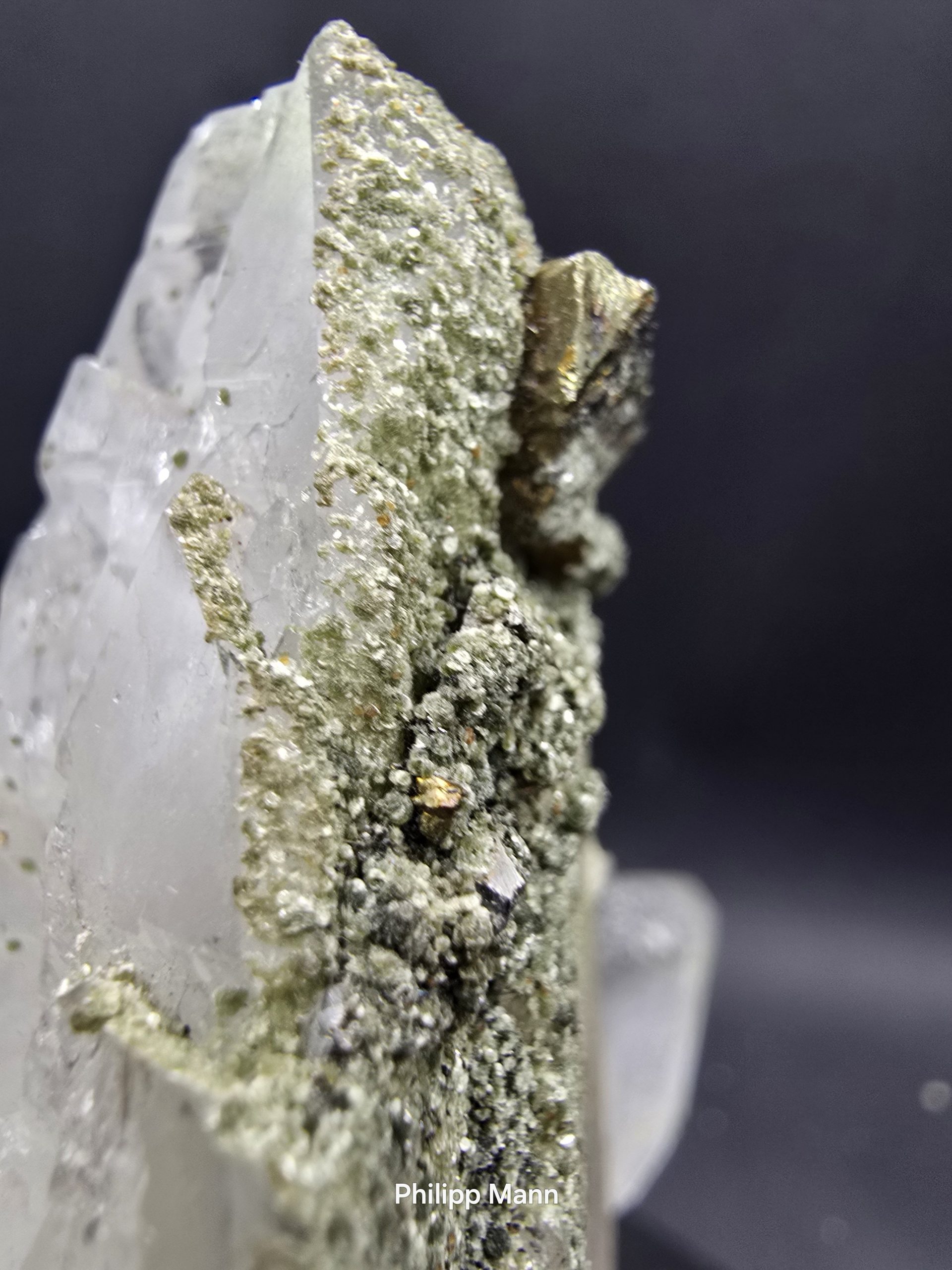 Entdecken Sie den einzigartigen Bergkristall aus Yaogangxian, Hunan, China, ein faszinierendes Sammlerstück aus dem Jahr 2002. Dieses beeindruckende Mineralstück mit Scheelit, Kupferkies und Bismuthinit misst 16 cm x 9 cm x 6,5 cm und wiegt 571 Gramm. Aufgrund von unterschiedlichen Monitoreinstellungen kann es zu Farbabweichungen kommen. Perfekt für Sammler und Mineralliebhaber.