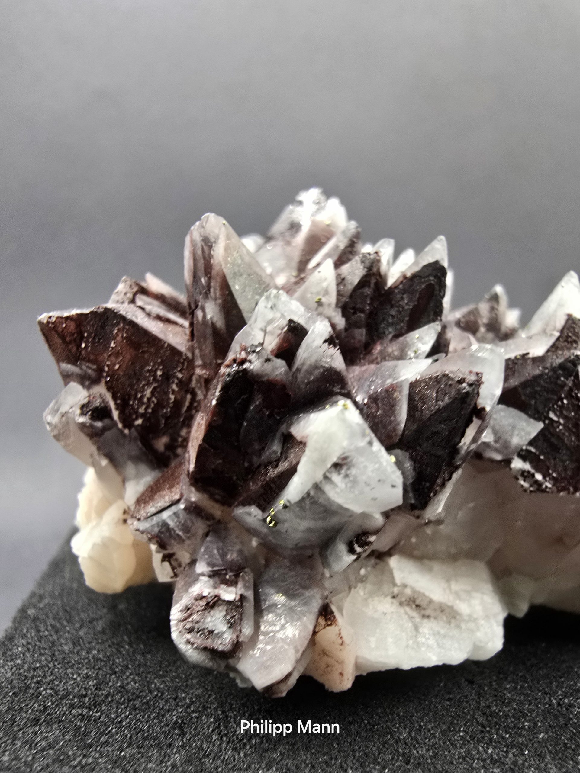 Dieses besondere Stück stammt aus dem Herz des Erzgebirges, Schlema. Der Calcit mit seinen eingewachsenen Hämatit- und Pyriteinschlüssen ist ein wirklich einzigartiges Fundstück. Seine glitzernden Einschüsse machen es zu einem echten Hingucker in jeder Sammlung. Perfekt für alle, die nach etwas Außergewöhnlichem suchen!