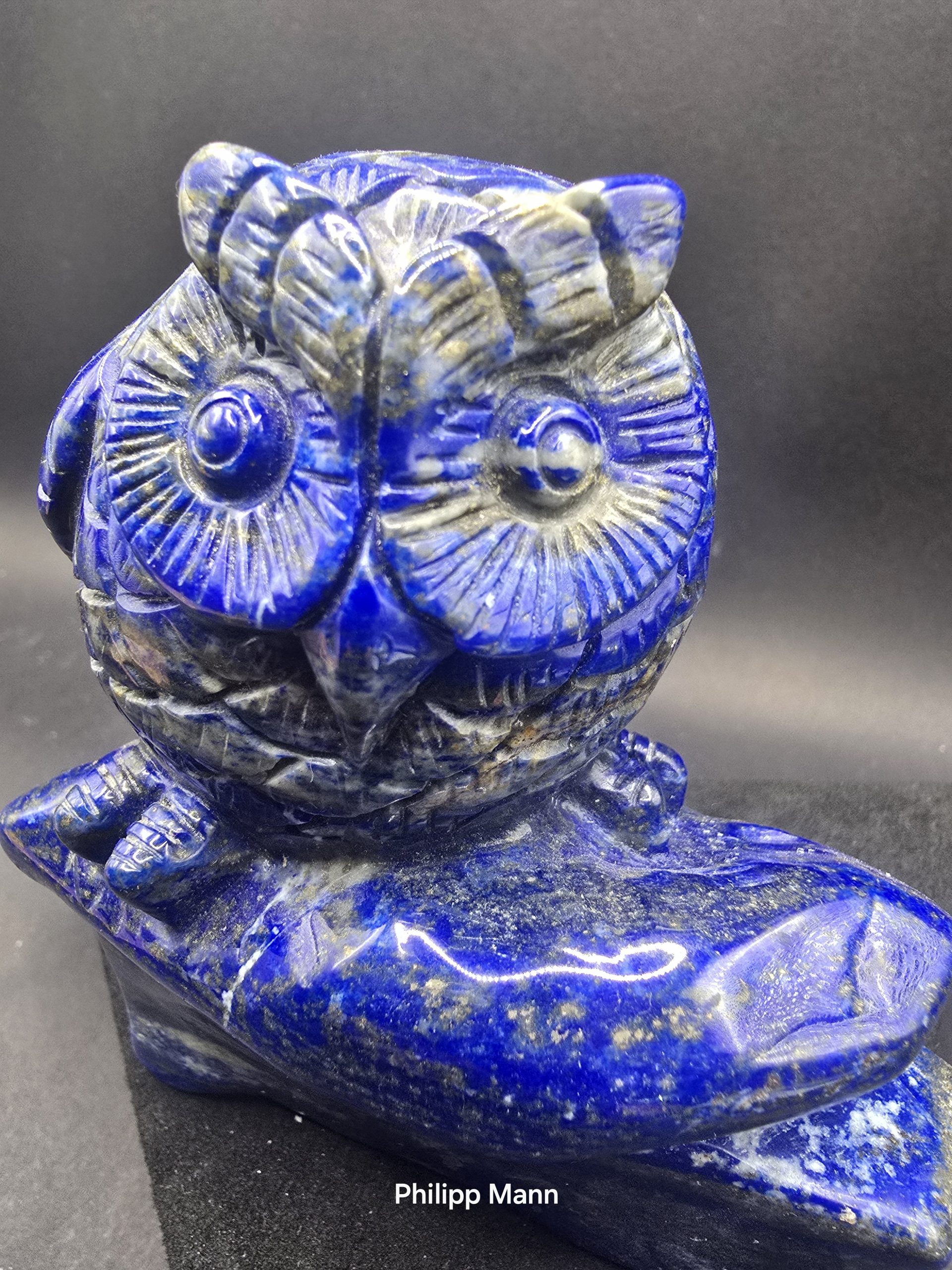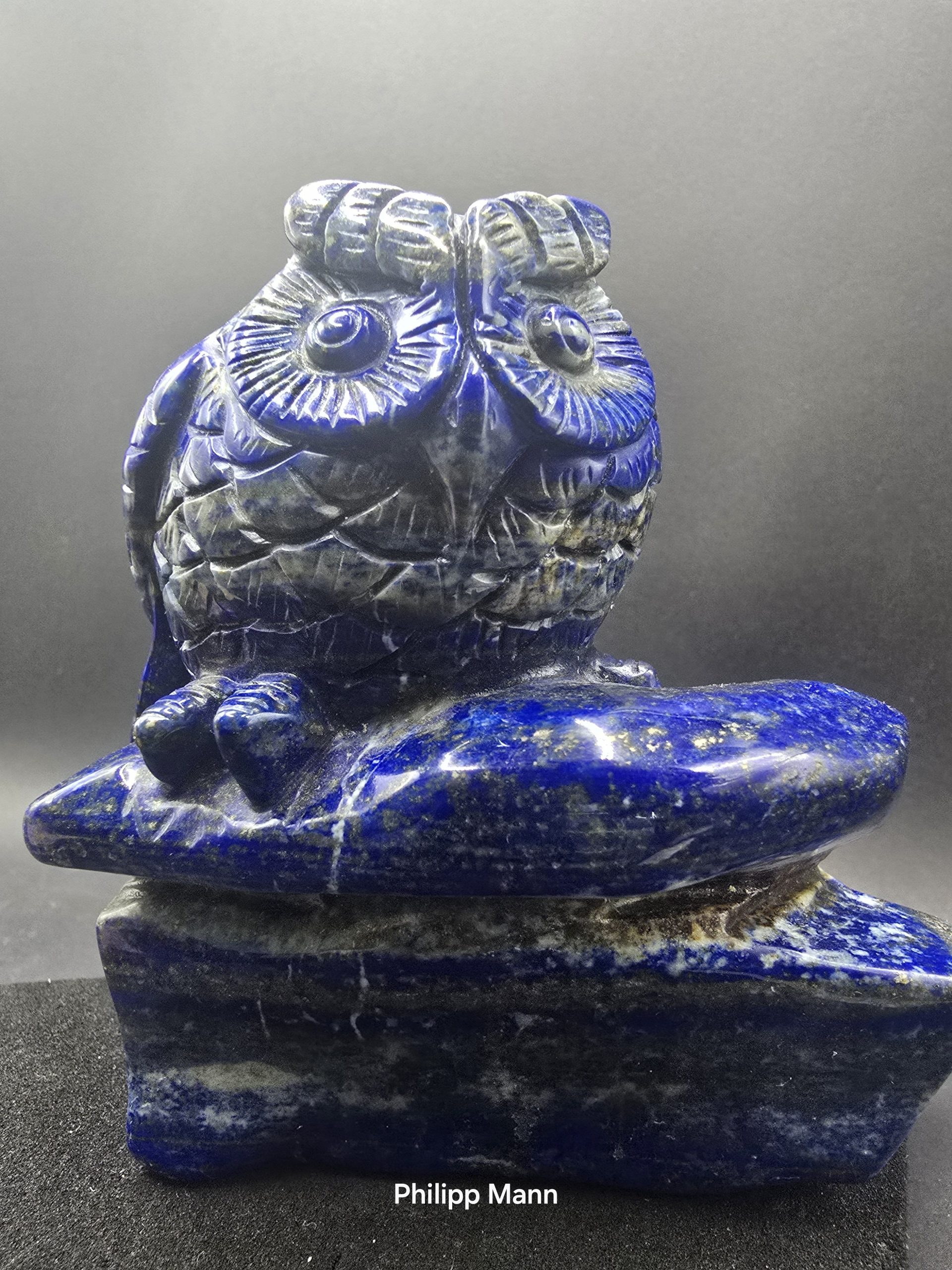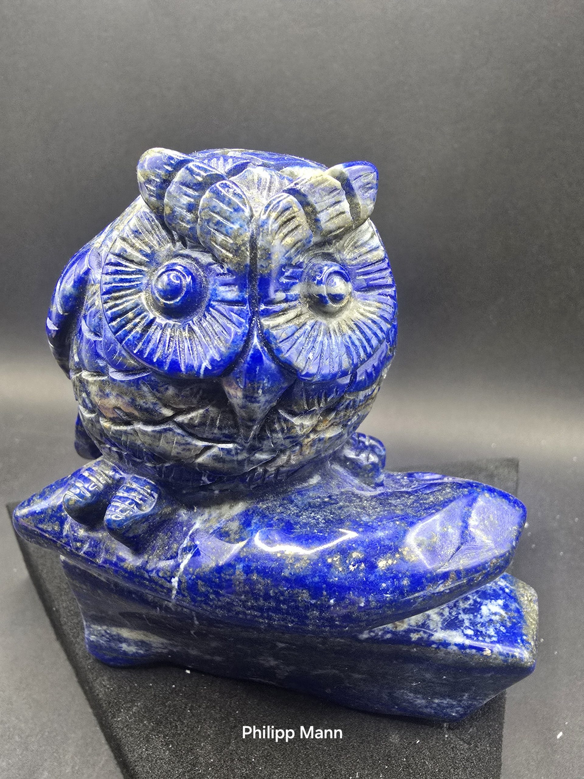 Handgefertigte Lapislazuli Eule: Symbol für Weisheit und Schutz, ideales Deko-Element.
