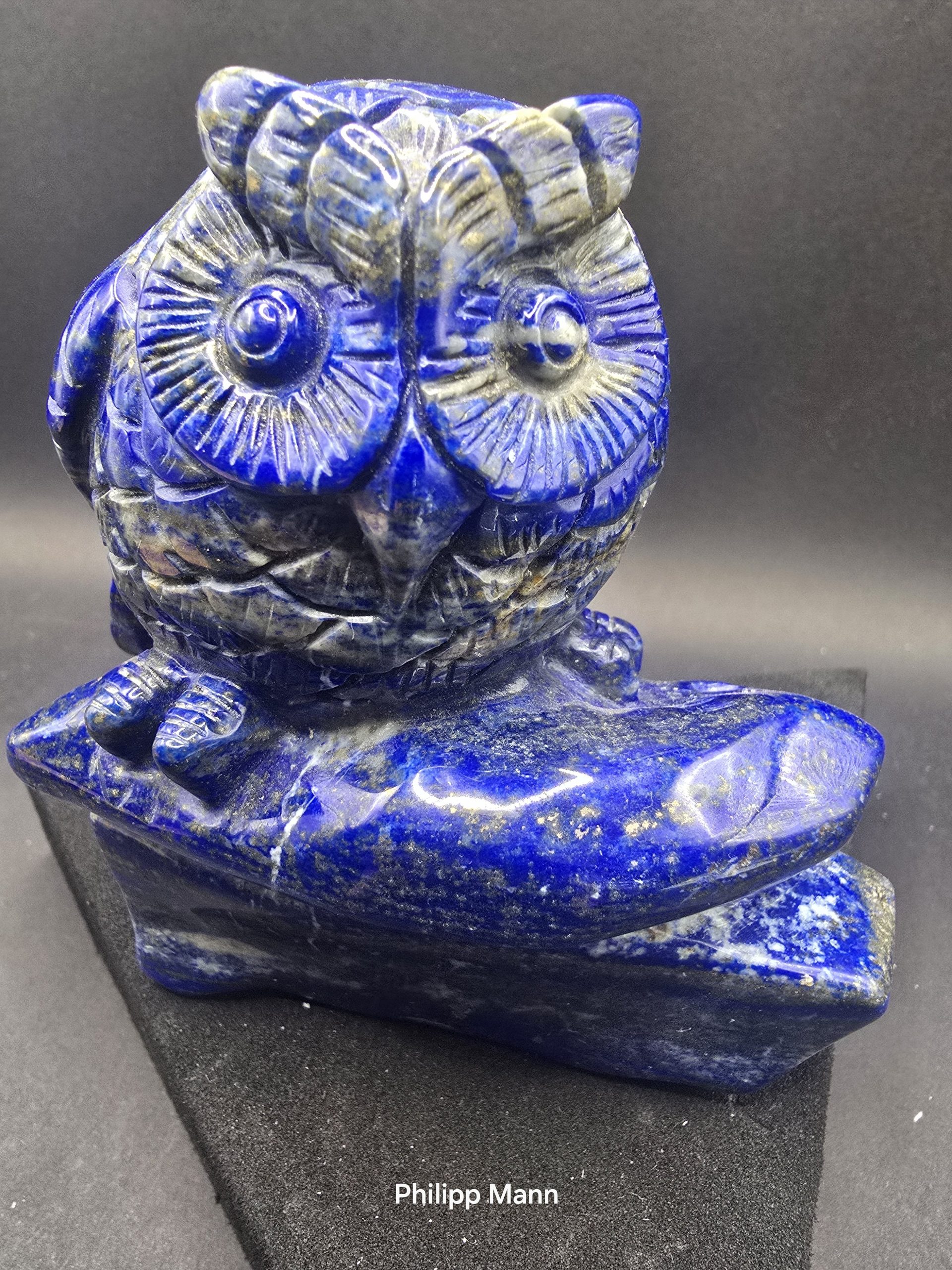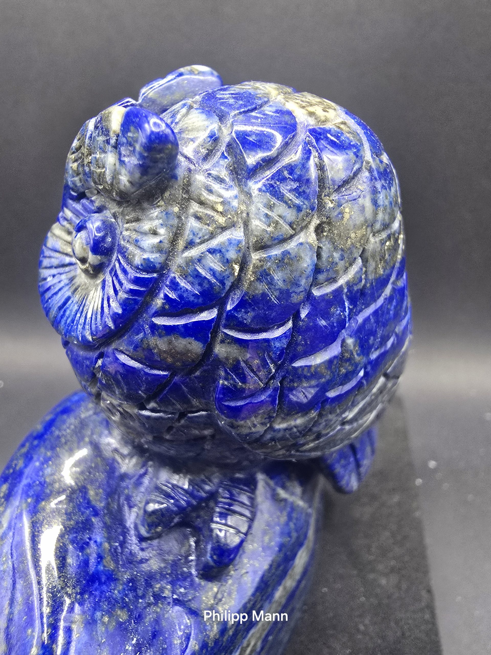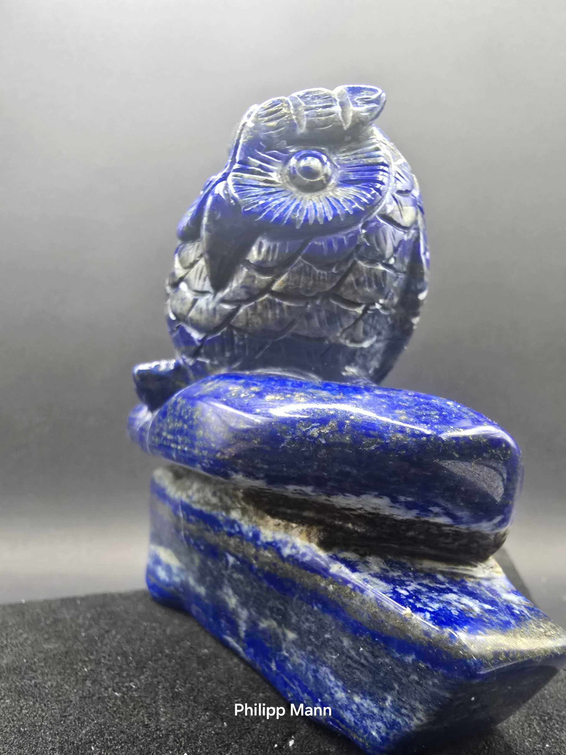 Handgefertigte Lapislazuli Eule: Symbol für Weisheit und Schutz, ideales Deko-Element.