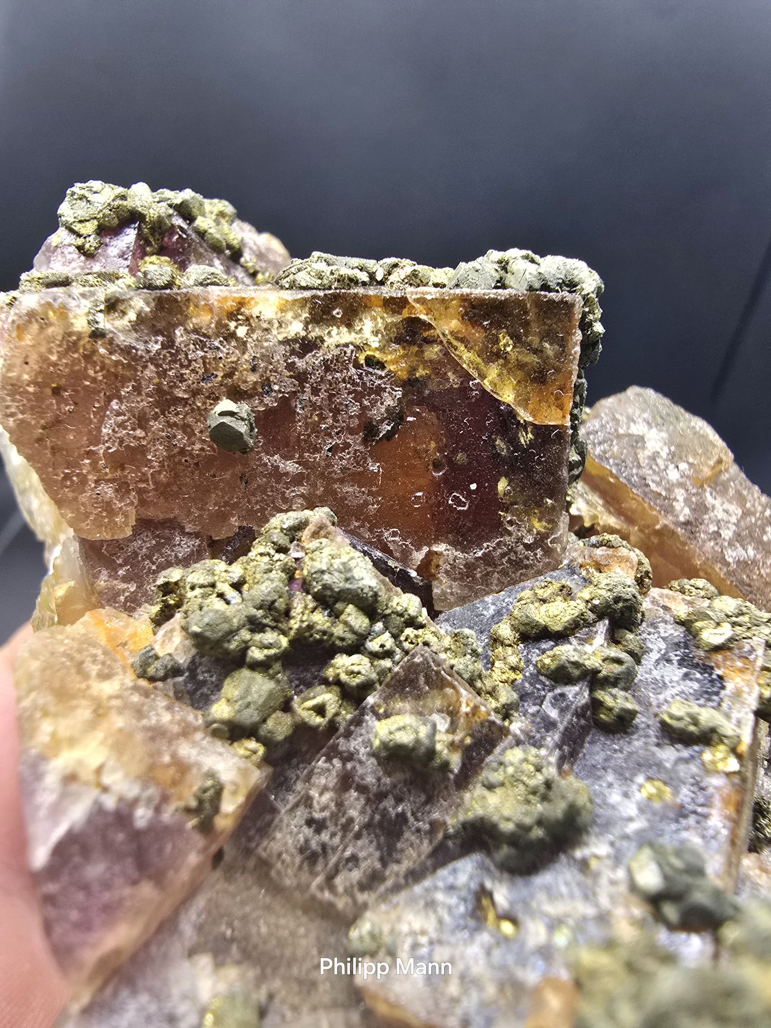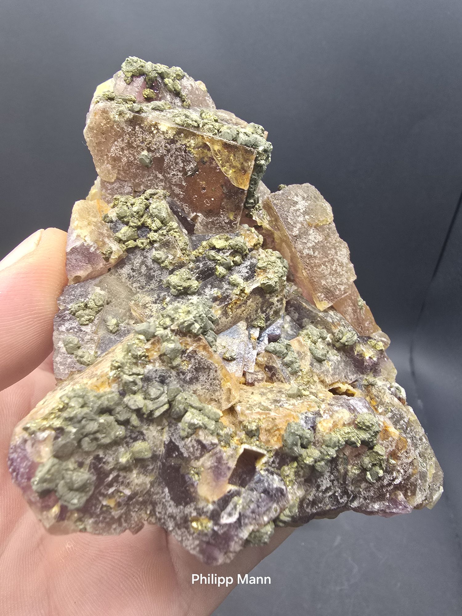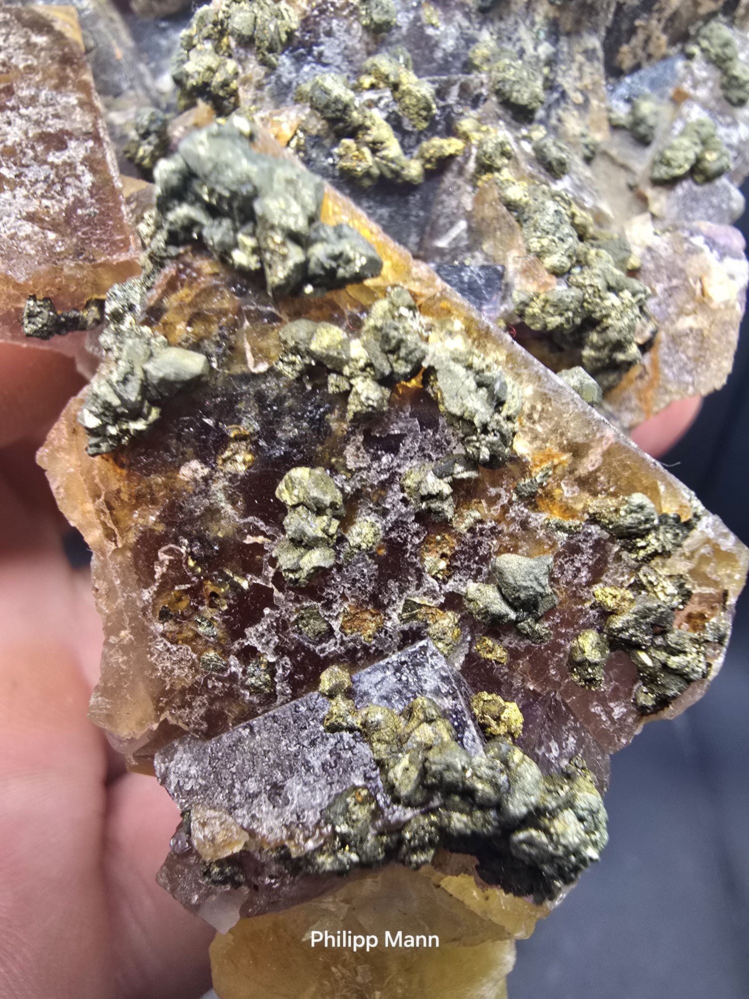 Fluorit mit Chalkopyrit aus Bergmännisch Glück Flacher Frohnau Maße13 cm x 9 cm x 4 cm Gewicht 437 Gramm Farbabweichung möglich je nach Monitoreinstellung