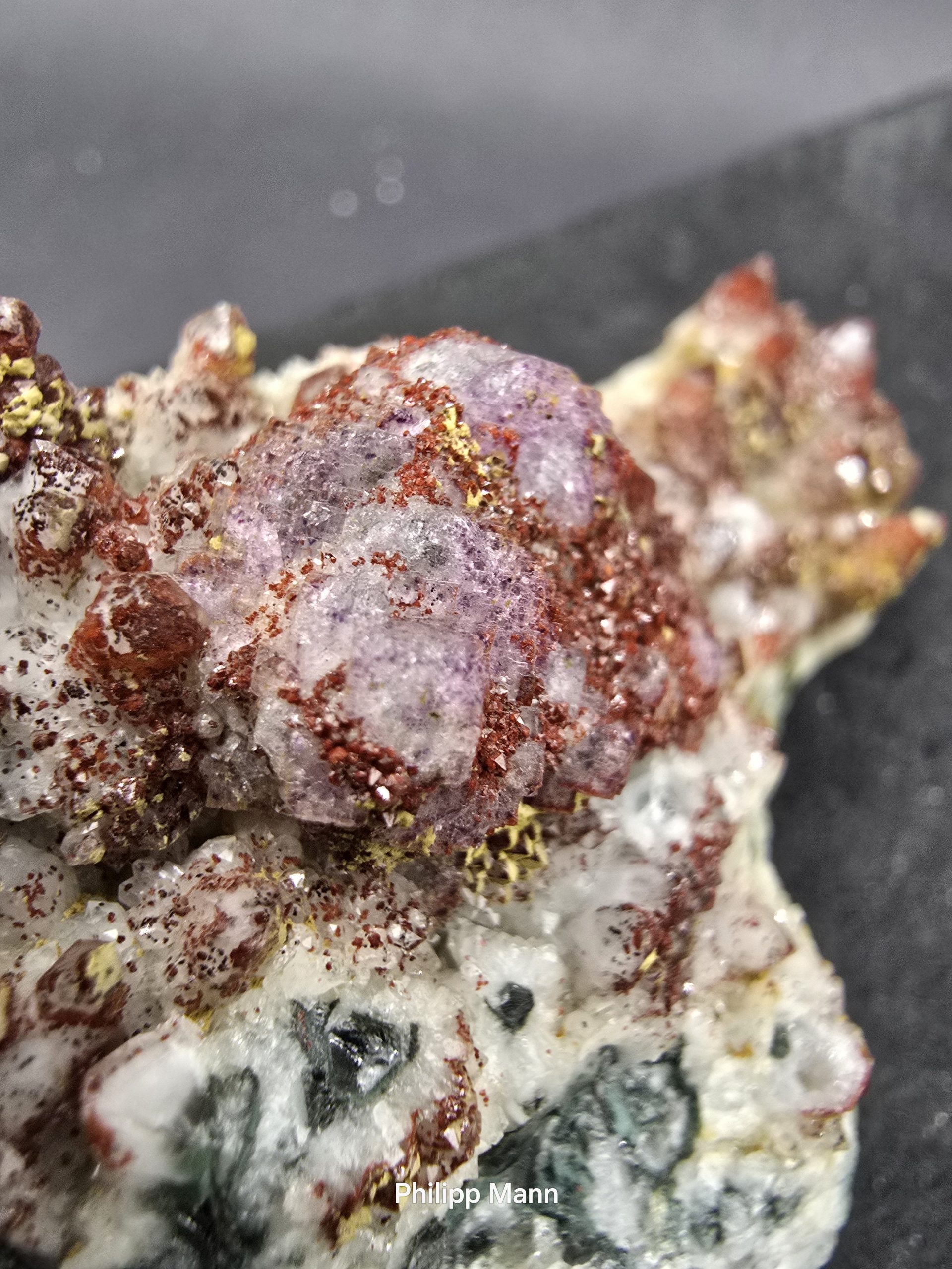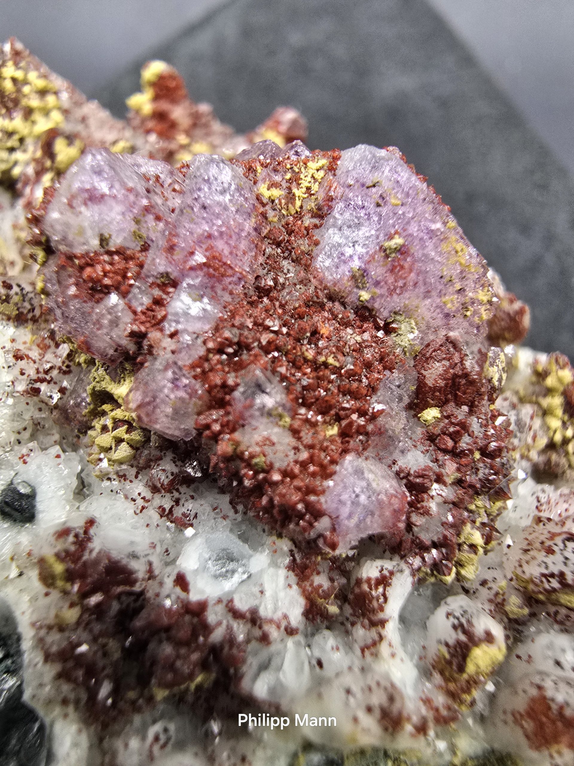 Entdecke die Schönheit des Fluorits auf Quarz mit Pyrit aus Antonsthal. Ein Muss für Mineralien-Liebhaber!