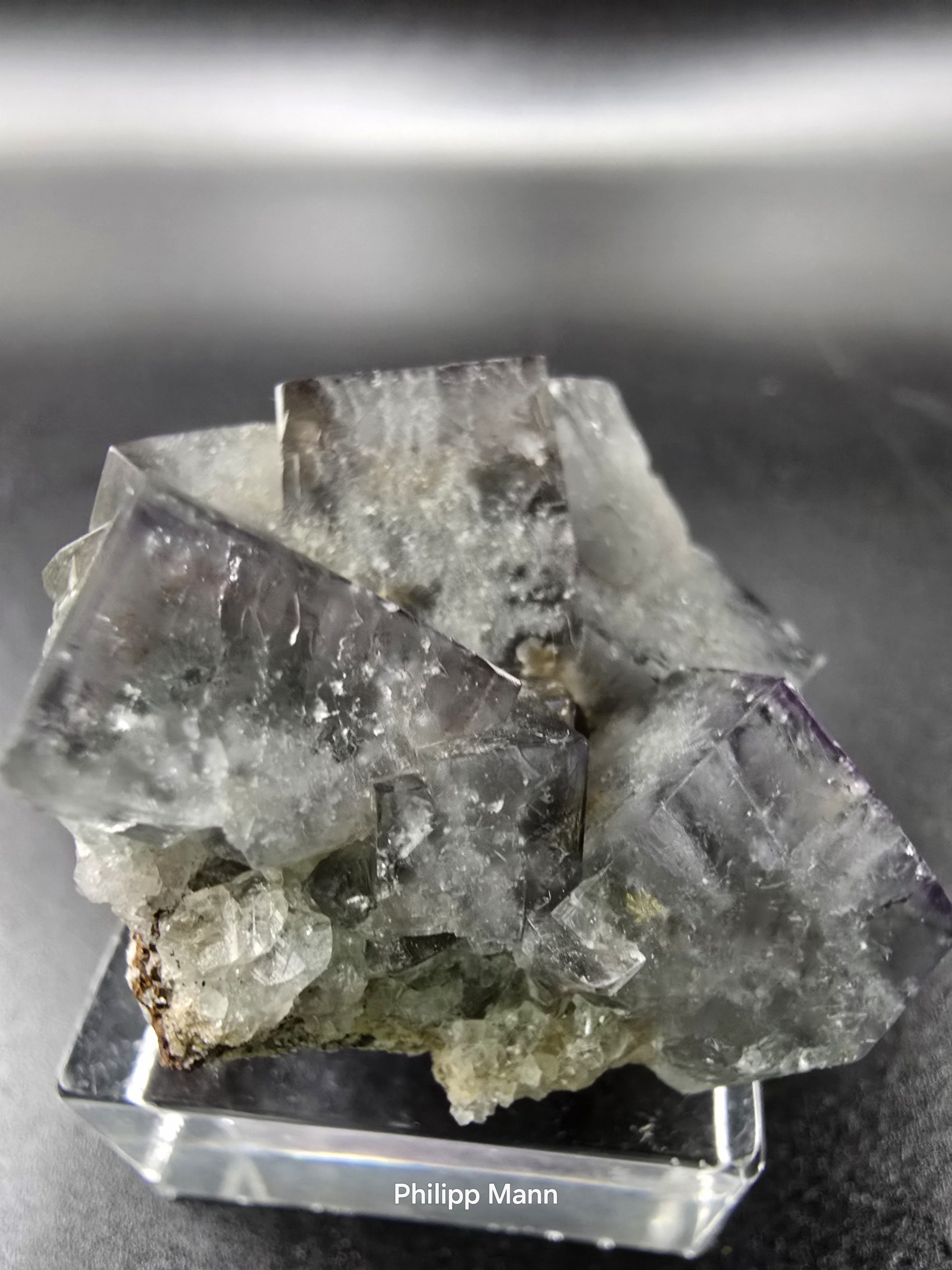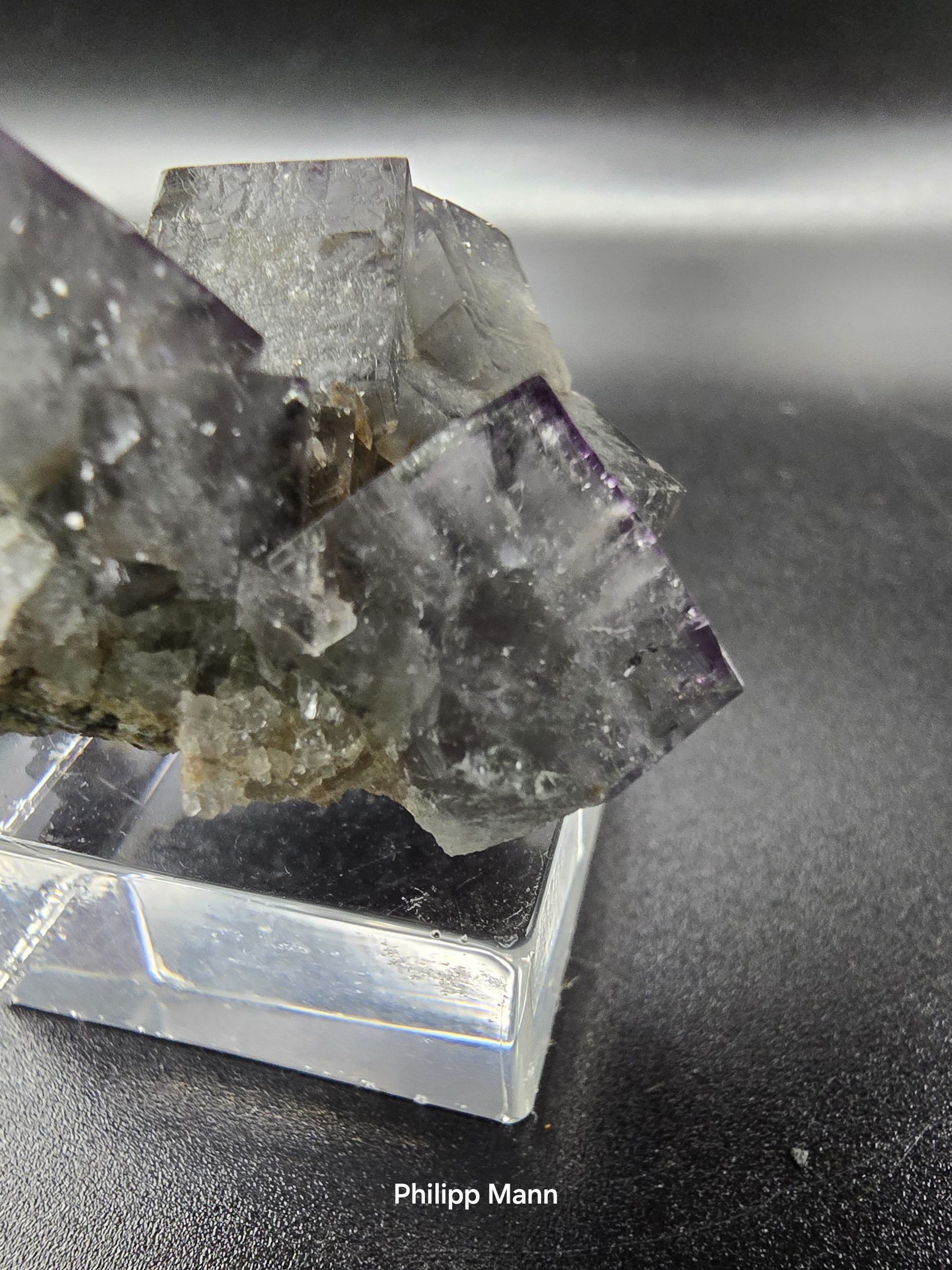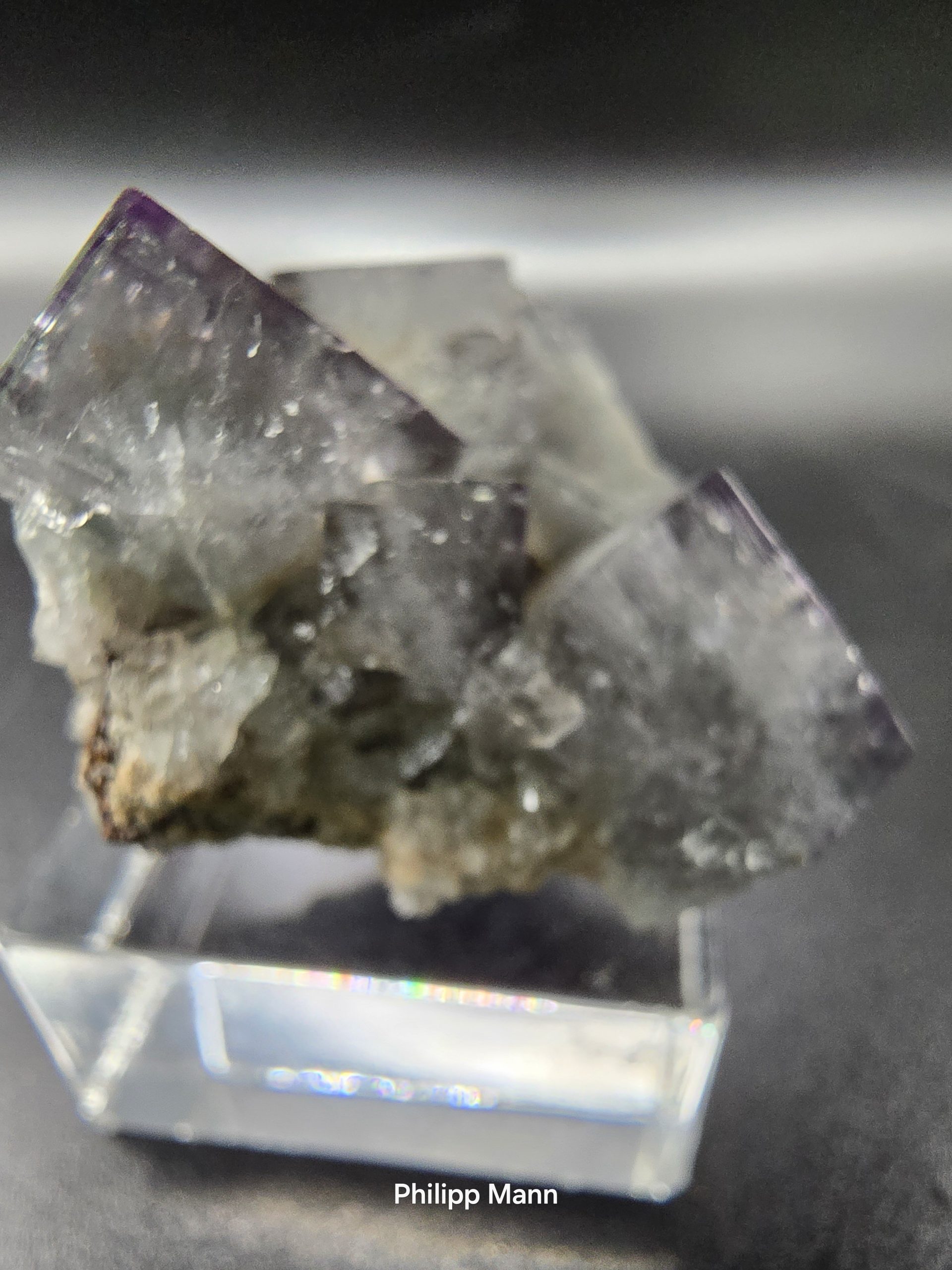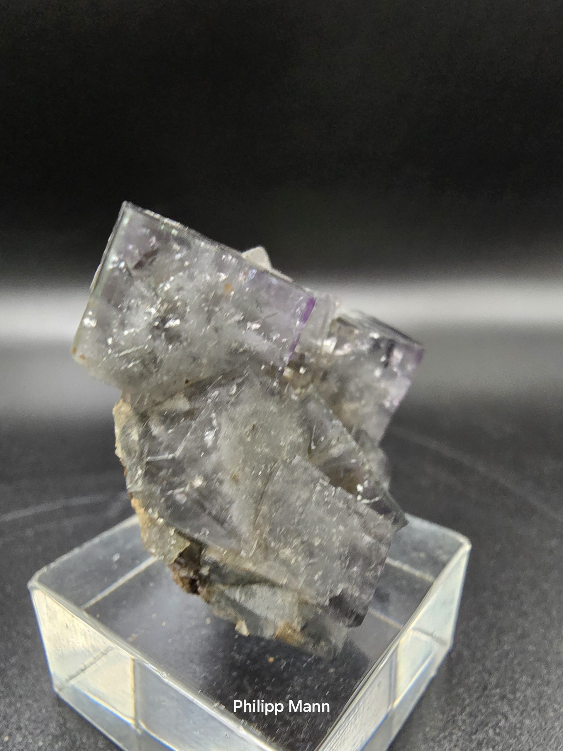 Entdecken Sie ein seltenes Juwel der Natur: der Fluorit mit fliederfarbenen Zonaren aus der bekannten Diana Maria Mine in Frosterley, Weardale, England. Mit Abmessungen von 3,5 cm x 3,3 cm x 2,2 cm und einem Gewicht von 27 Gramm, stellt dieser Fluorit ein faszinierendes Sammlerstück dar. Die leichten farblichen Variationen, die je nach Monitoreinstellung auftreten können, fügen zusätzlichen Charme hinzu. Dieses Mineral von seltener Schönheit ist ein absolutes Muss für jeden ernsthaften Sammler oder Liebhaber von Naturwundern.