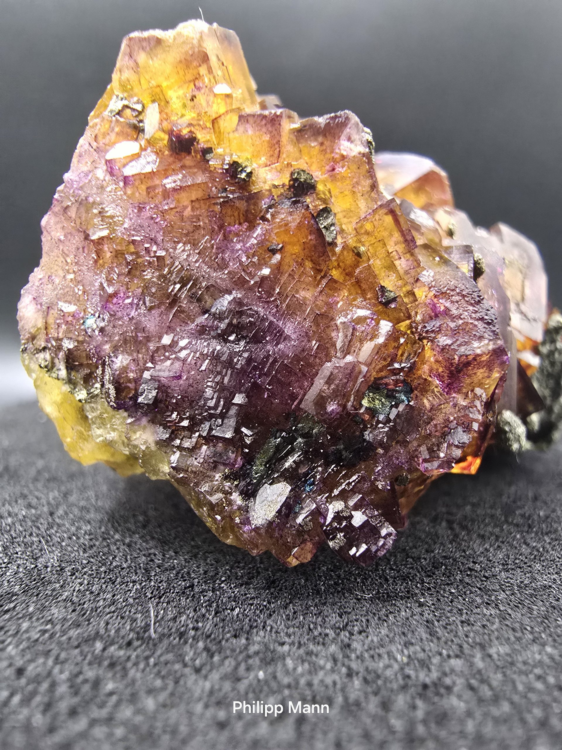 Fluorit Zonar mit Chalkopyrit aus dem Sauberg Ehrenfriedersdorf Erzgebirge