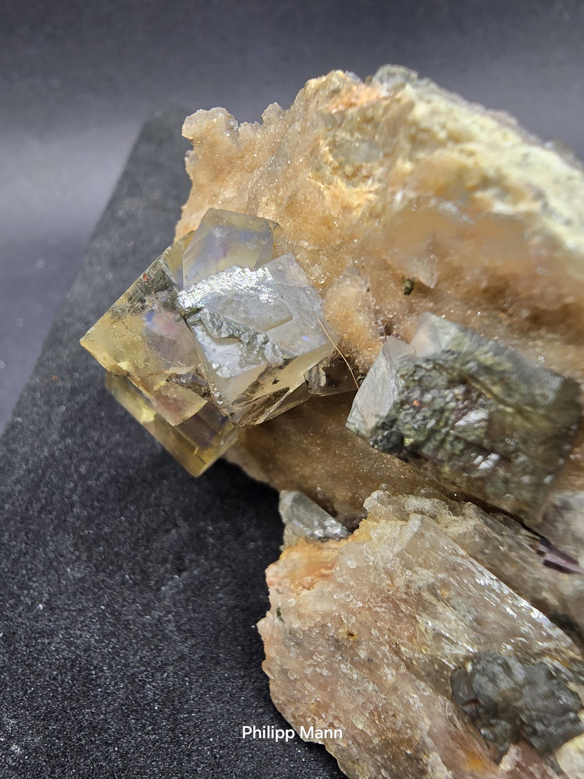 Fluorit mit Zonar blau Chalkopyrit und Baryt aus EFS Niederschlag Erzgebirge Maße 7 cm x 4,5 cm x 3,5 cm Gewicht 91 Gramm Farbeabweichung möglich je nach Monitoreinstellung