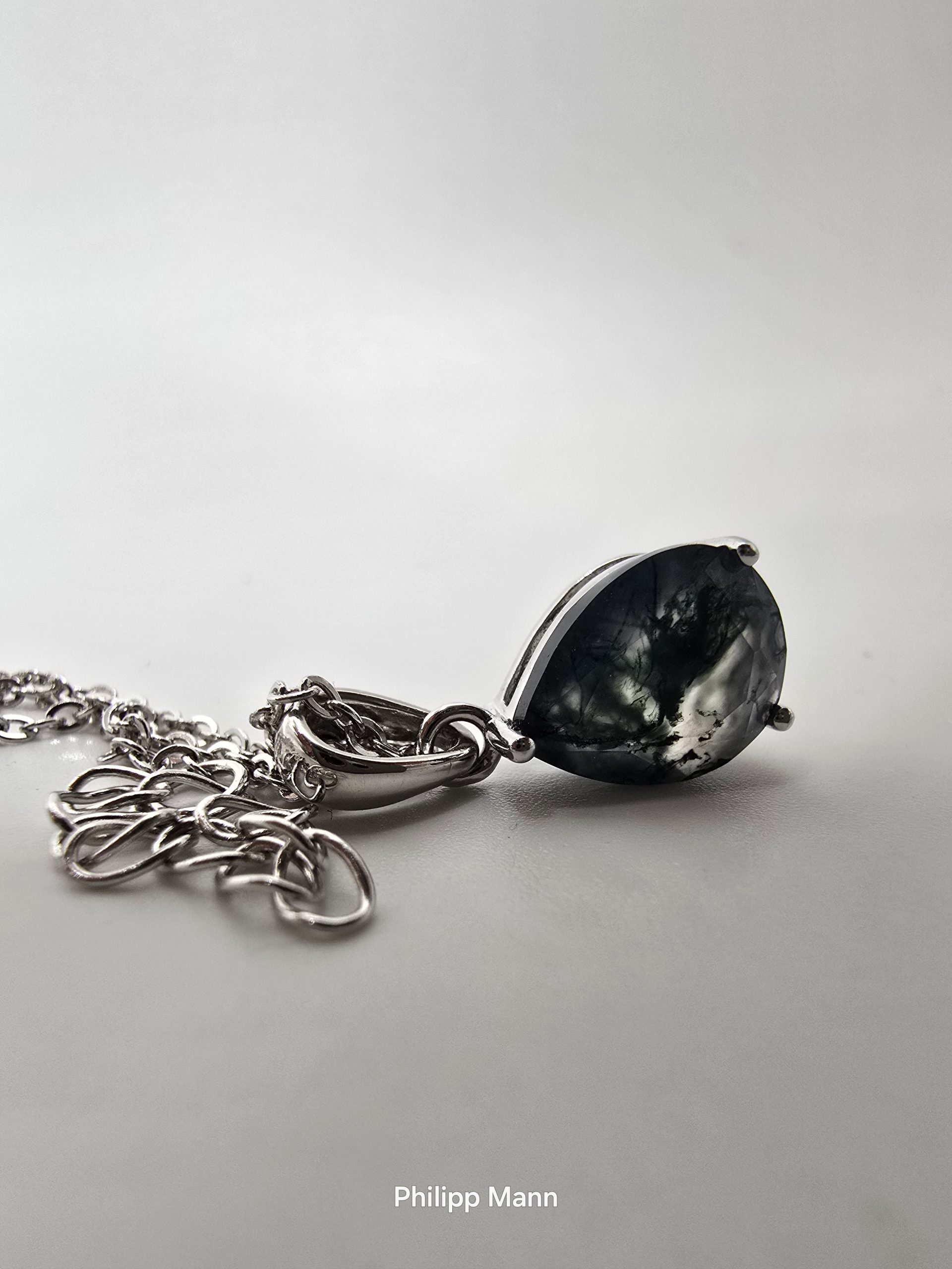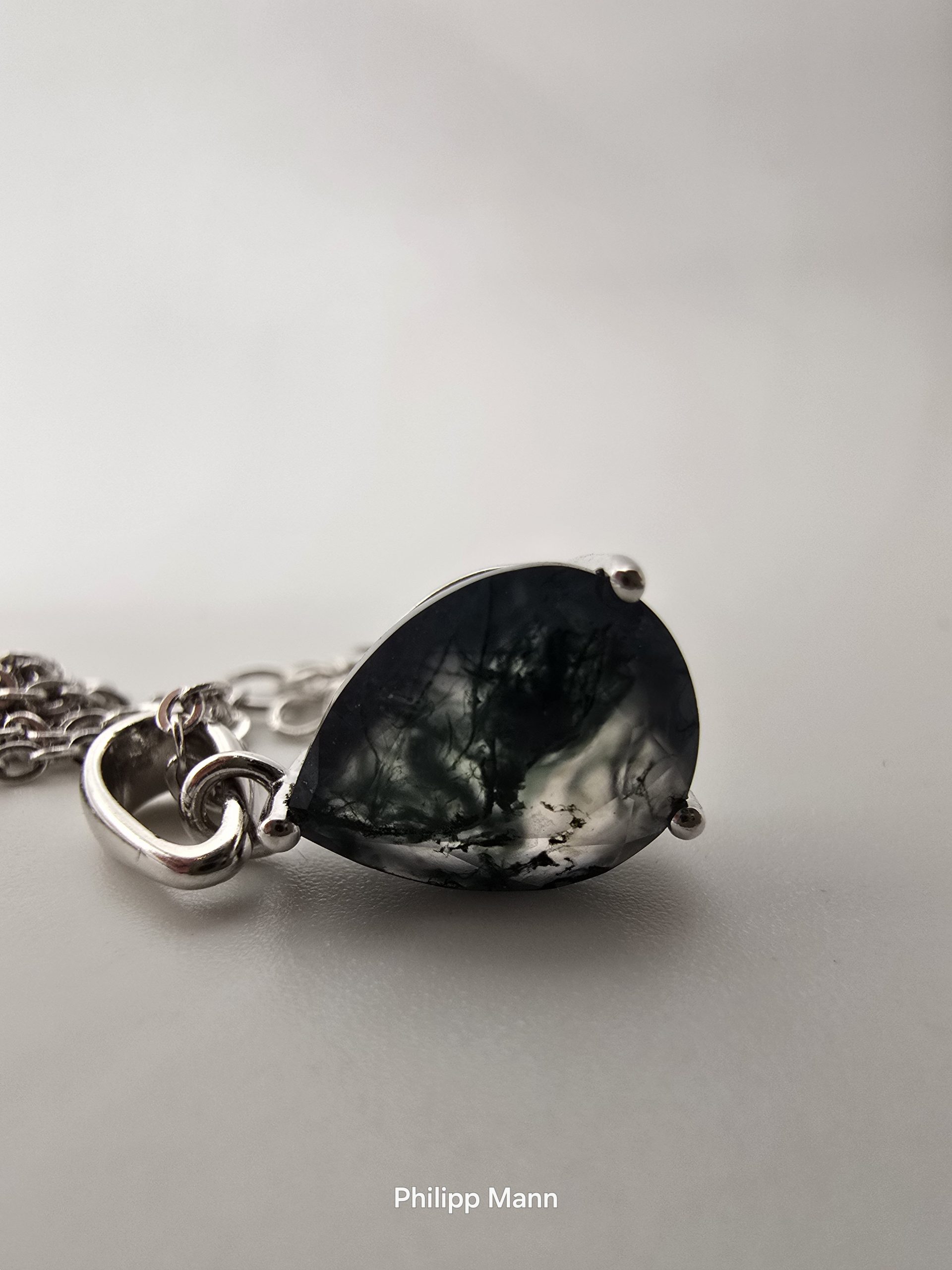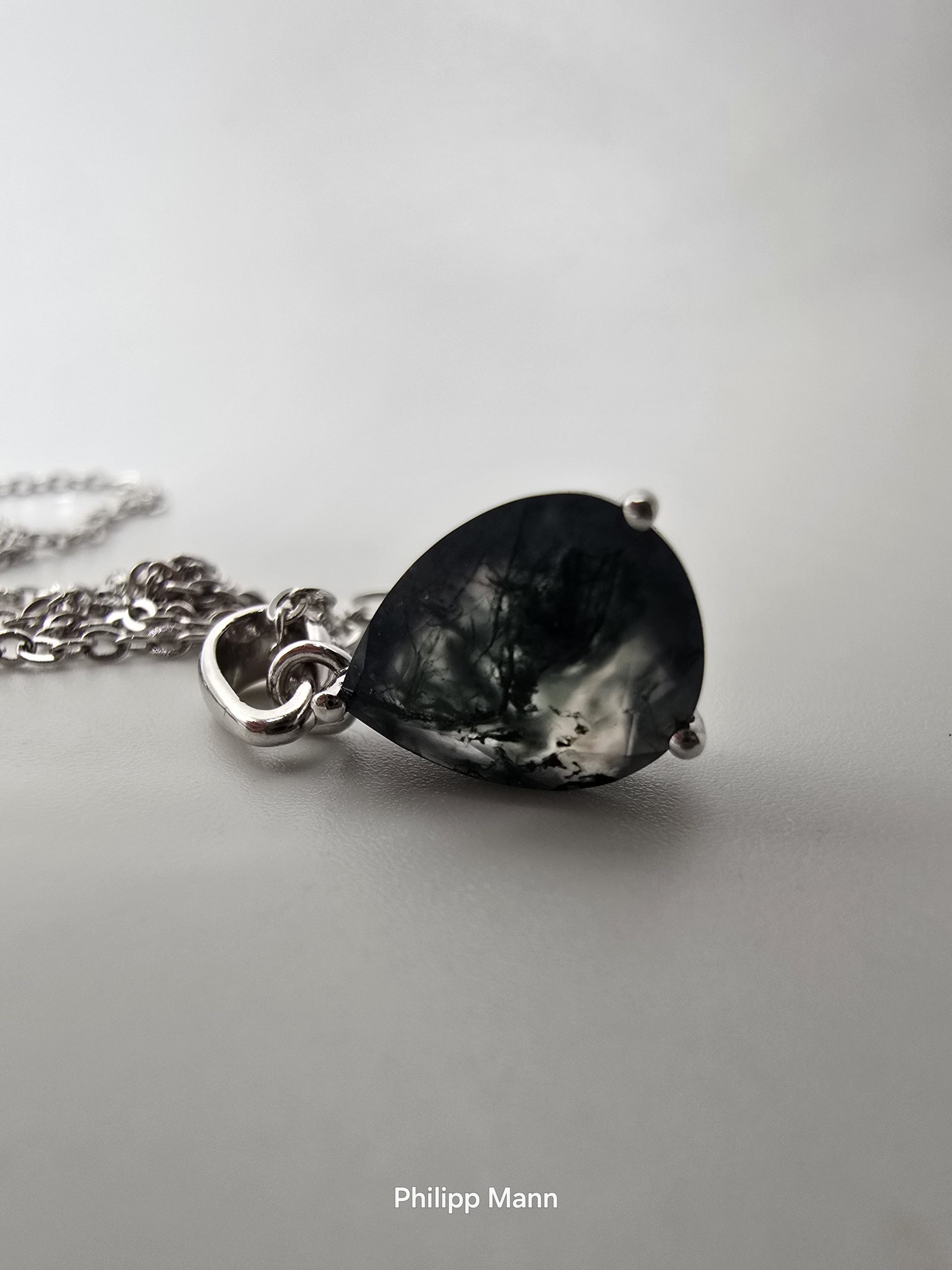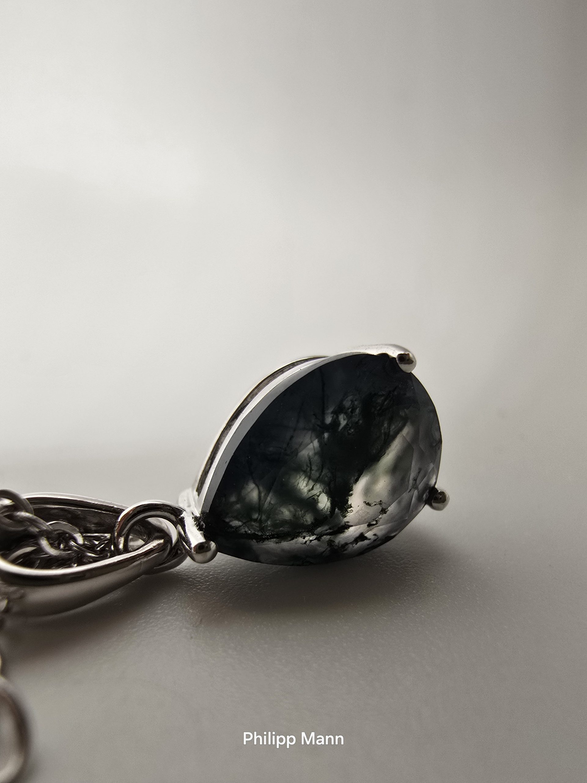 Gönnen Sie sich oder jemand Besonderem dieses exklusive Schmuckset aus 925 Sterling Silber mit edlem Moosachat. Das Set, bestehend aus Ohrsteckern, einem Ring in Größe 8 und einer Halskette mit Anhänger, kombiniert Qualität mit klassischer Schönheit. Bitte beachten Sie, dass geringe Farbabweichungen je nach Bildschirmeinstellung auftreten können, die den individuellen Charme jedes Stücks verstärken.