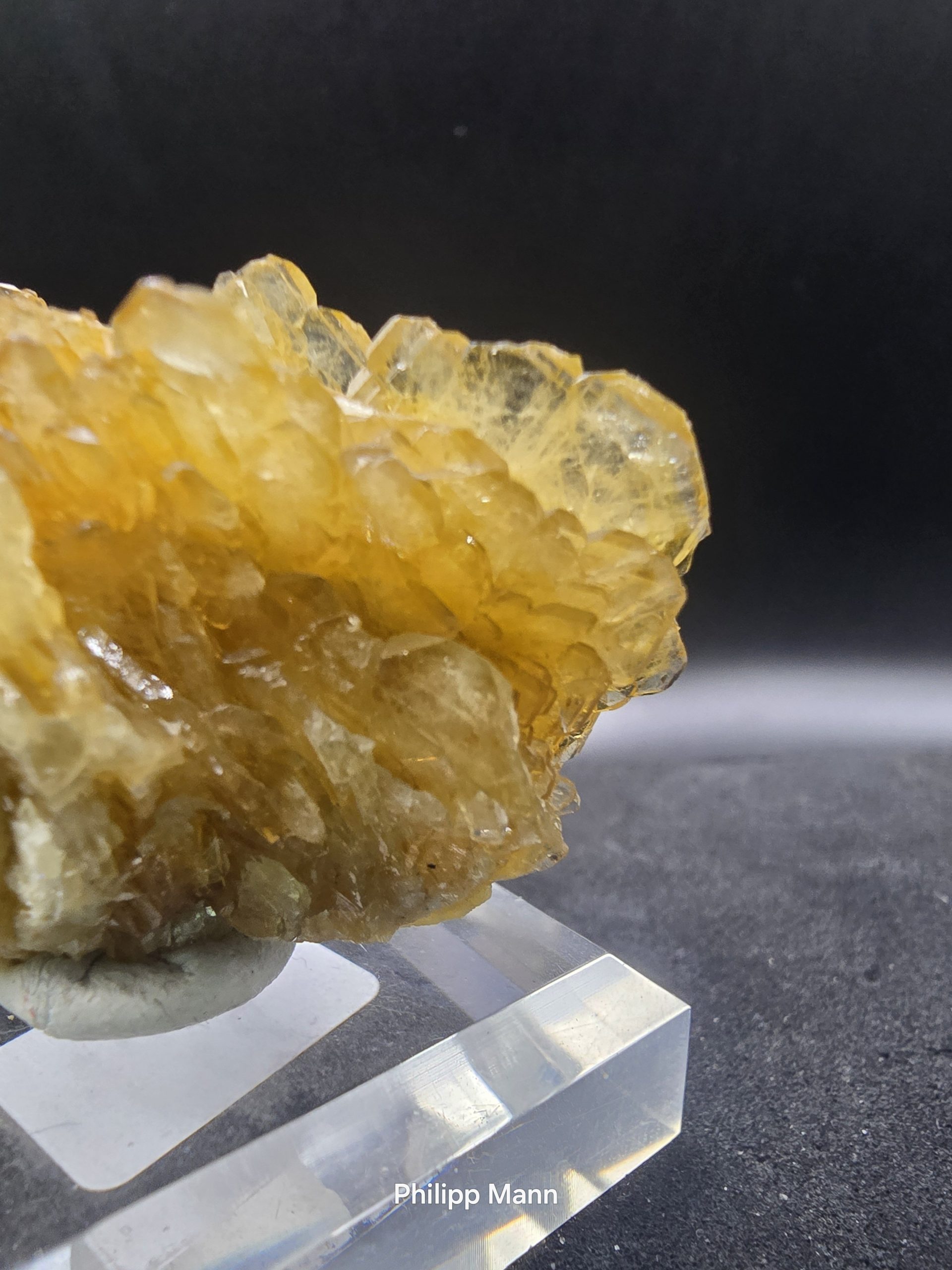 Dieses faszinierende Stück, der Honigbaryt auf Quarz aus dem malerischen Pöhla Erzgebirge, ist ein Muss für Sammler. Ein altes, jedoch gut erhaltenes Sammlerstück, ideal für Schreibtisch oder Vitrine!
