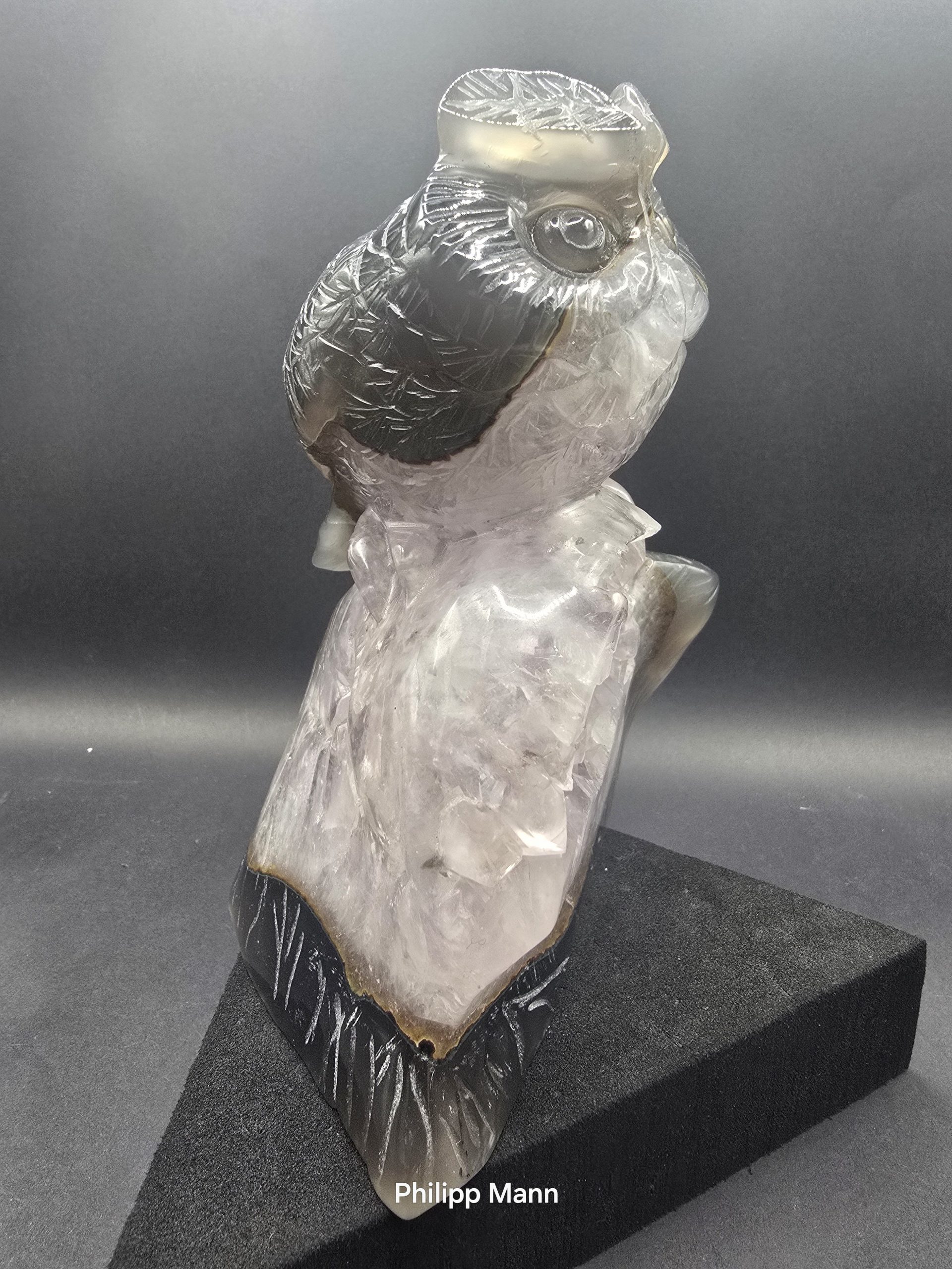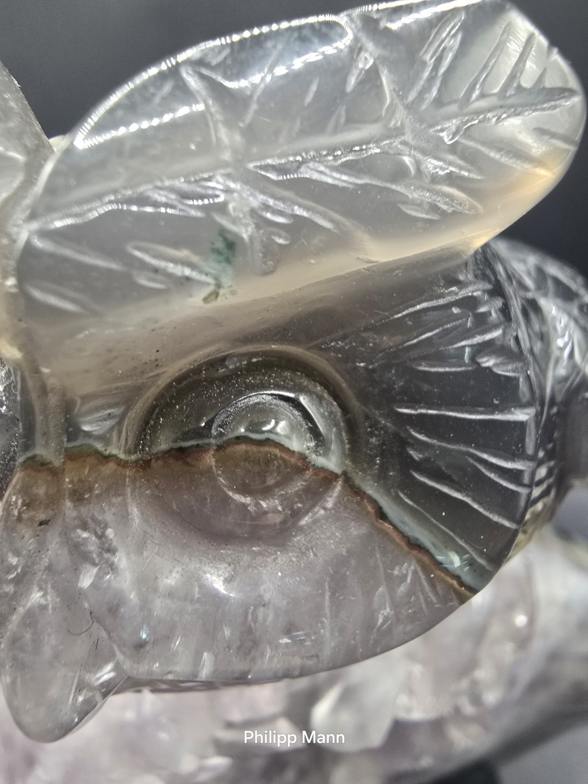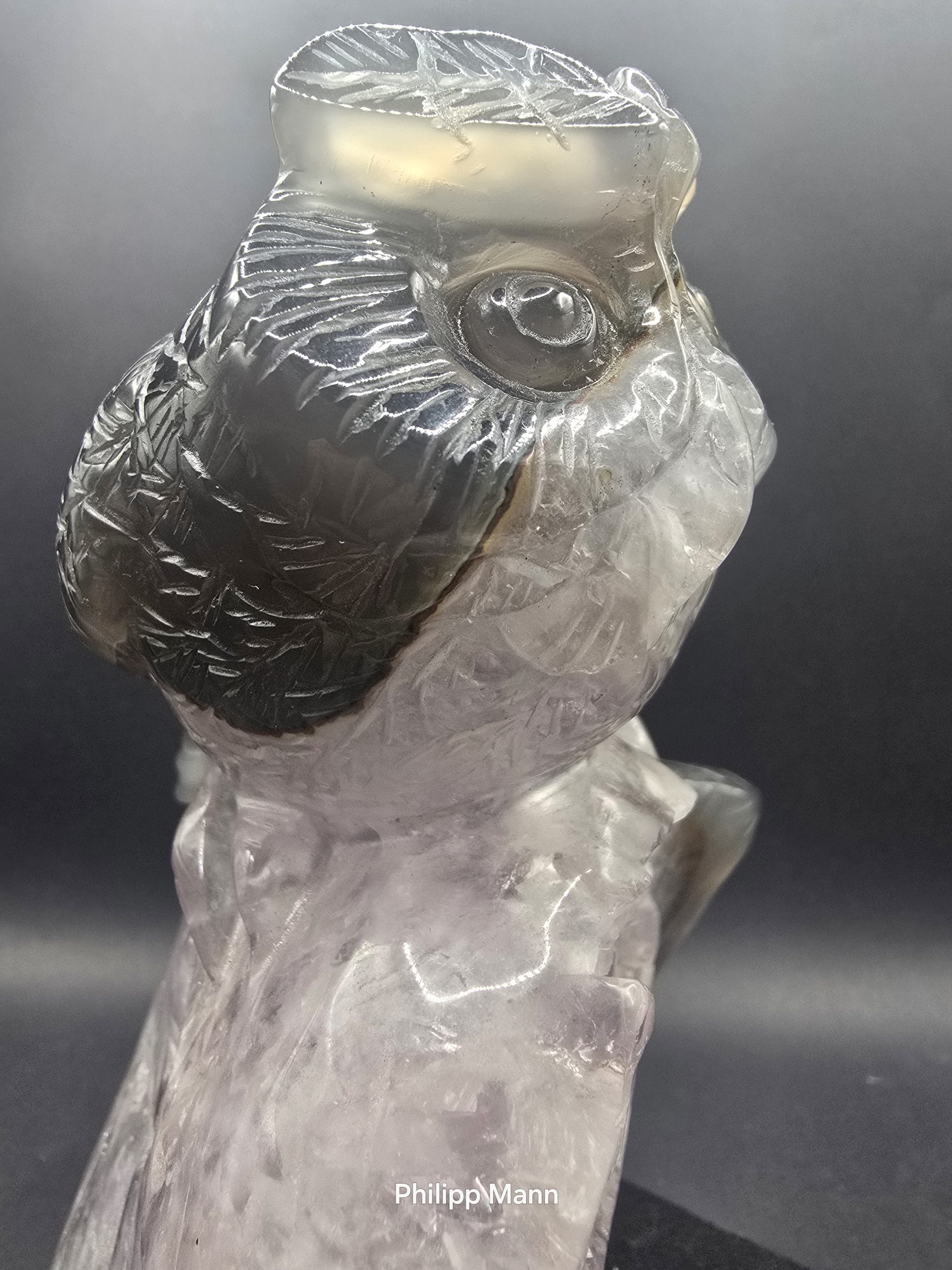 Schnitzkunst trifft Natur: Eule aus Amethyst mit einzigartiger Geodenöffnung – ein echter Blickfang!