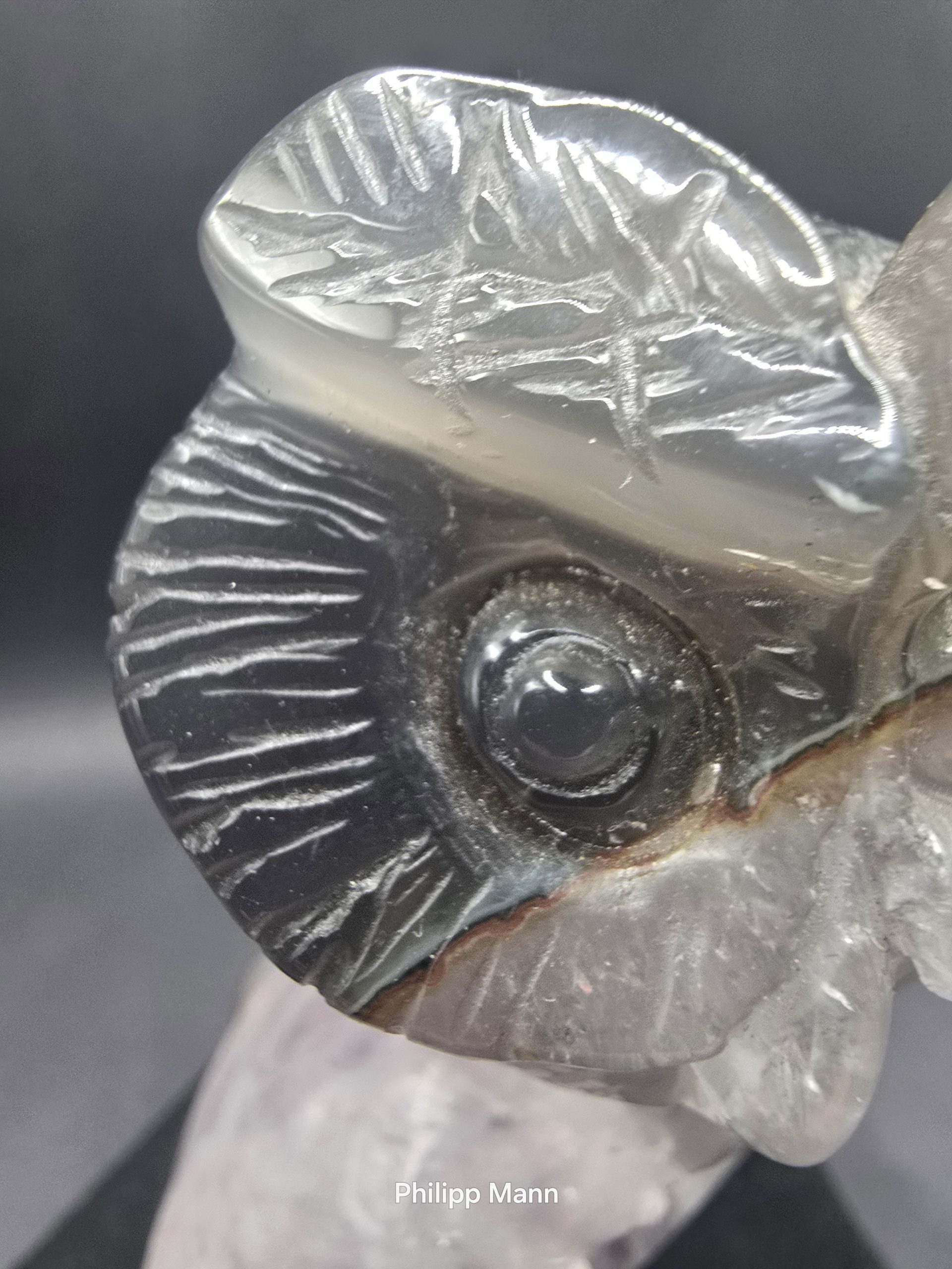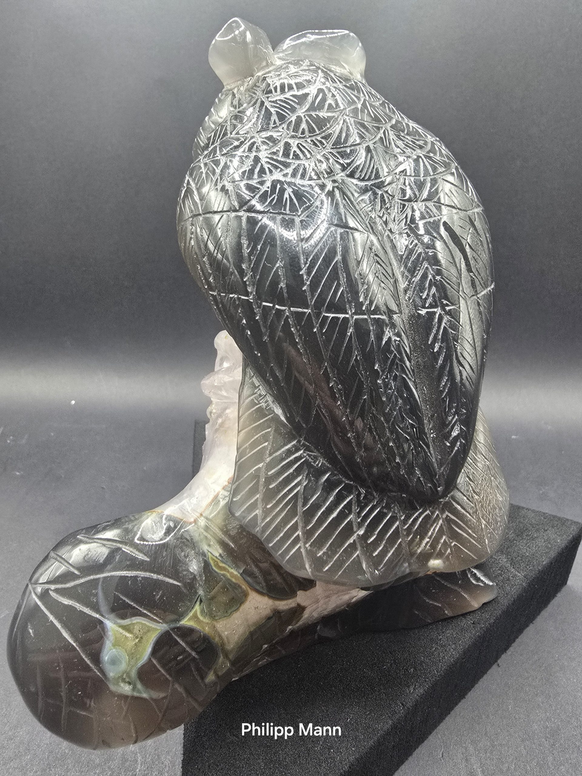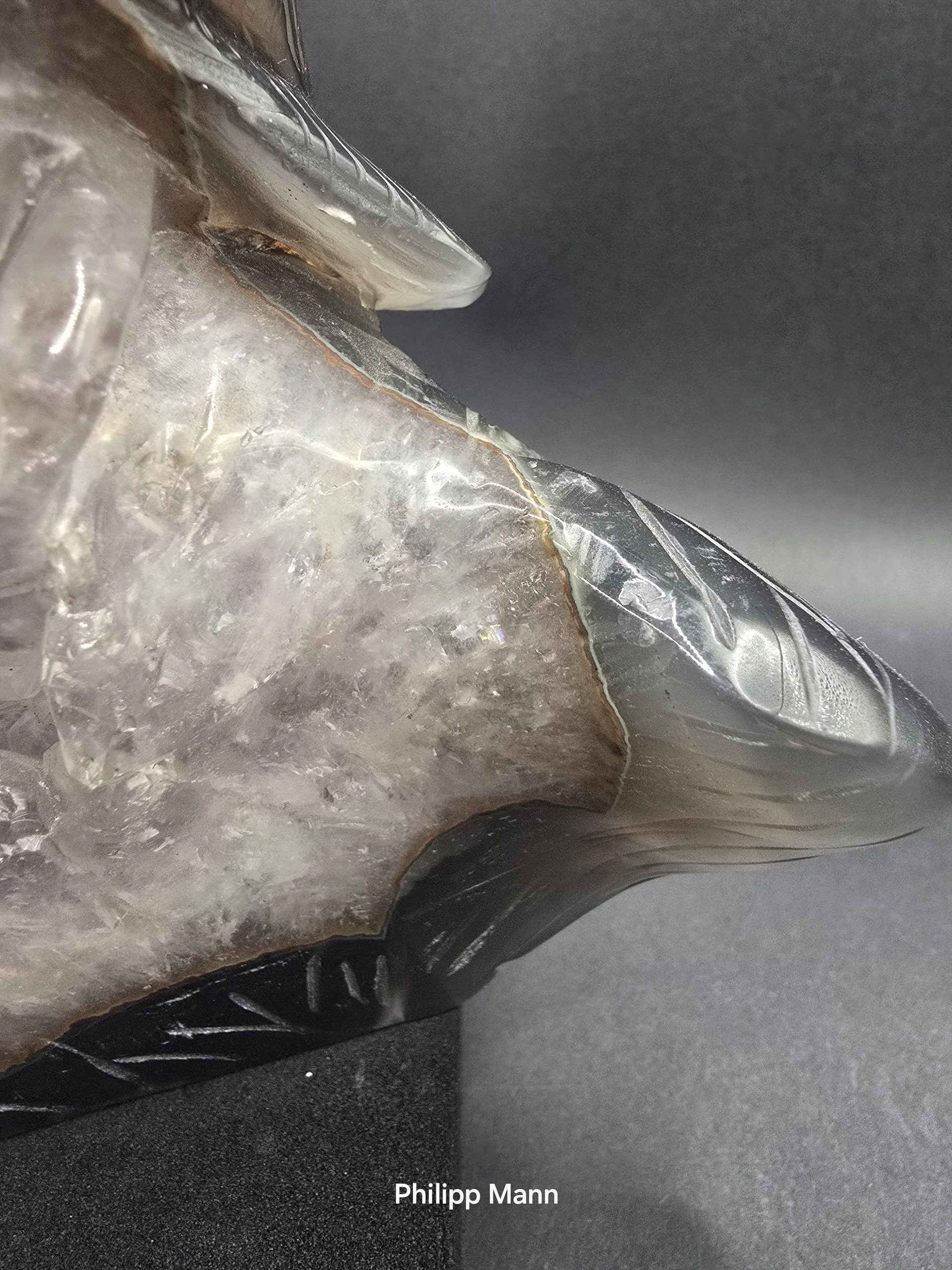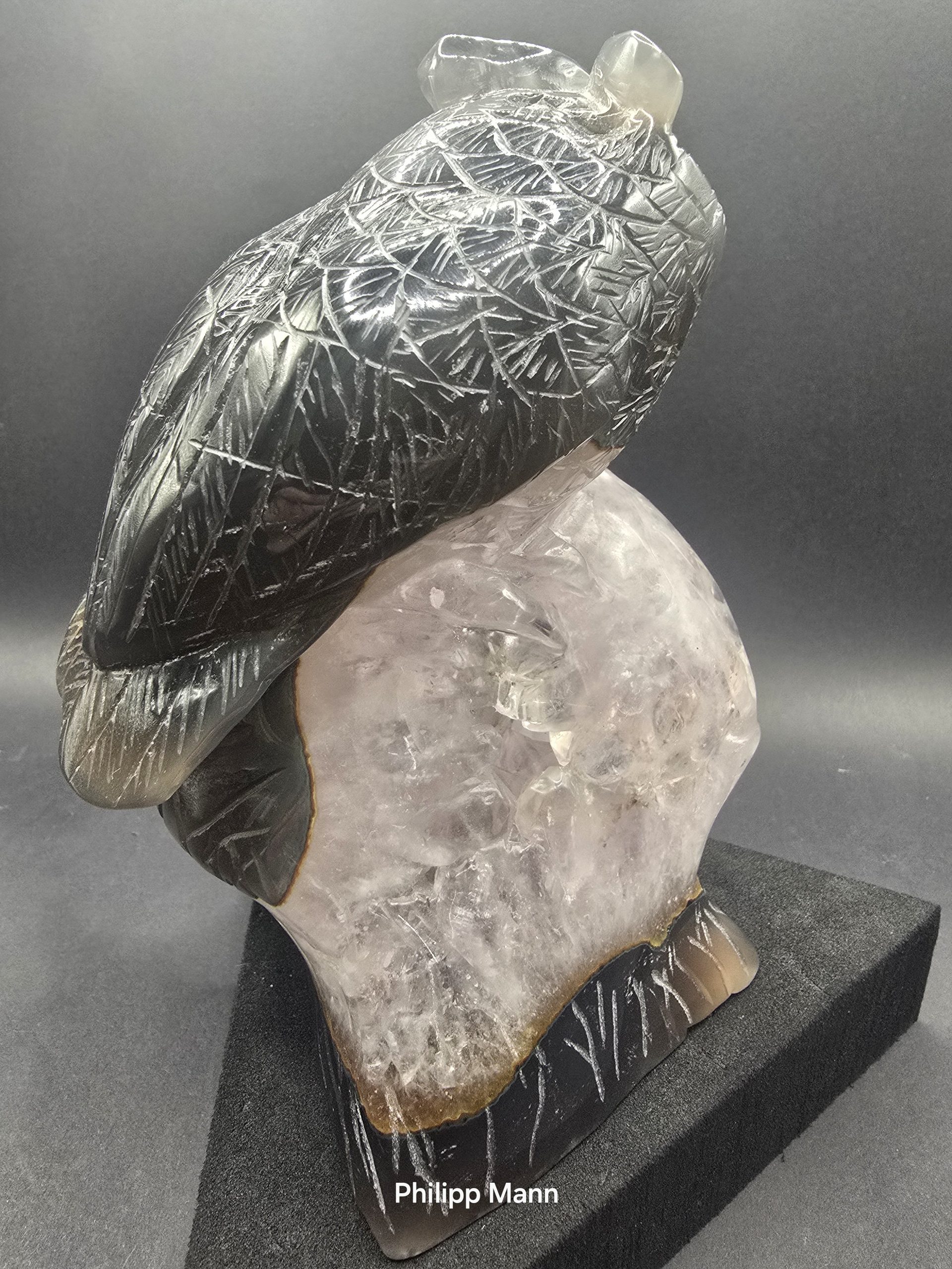 Schnitzkunst trifft Natur: Eule aus Amethyst mit einzigartiger Geodenöffnung – ein echter Blickfang!